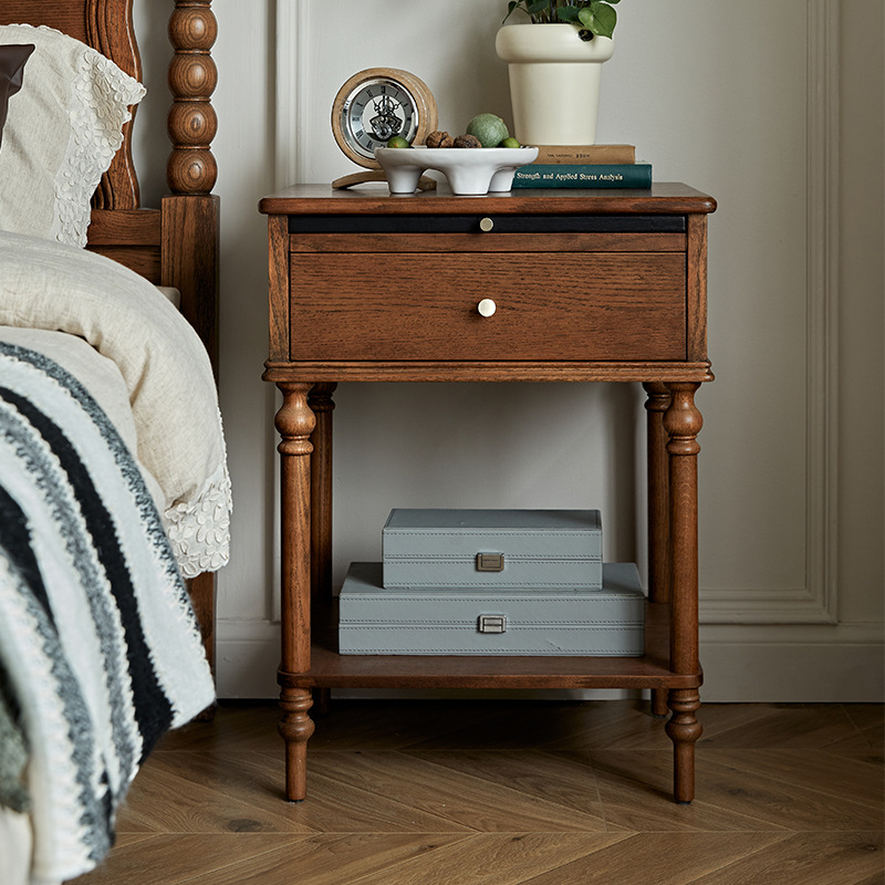 塔莎床头柜胡桃木色实木带抽屉卧室床边储物柜法式复古家用小户型