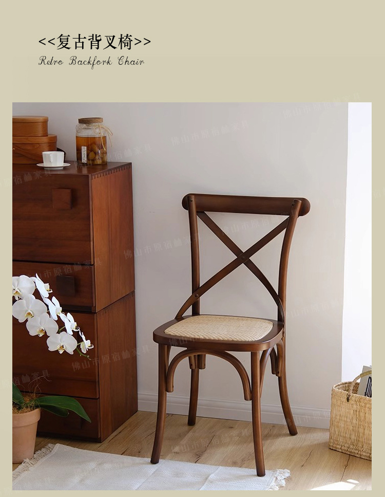 北欧ダイニングチェアレトロ背もたれフォーク椅子実木ダイニングチェアカフェチェア籐椅子中古ヴィンテージ