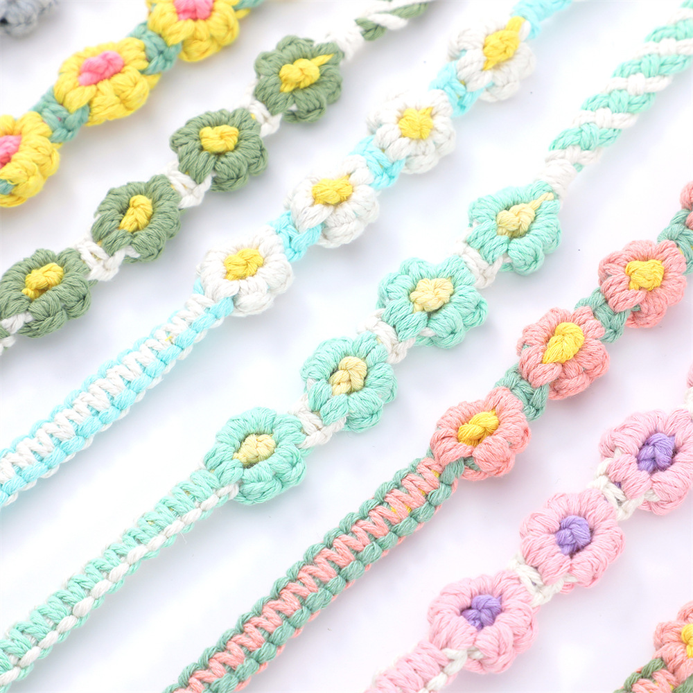 ボヘミアン手編みデイジー花ストラップコットンキーホルダーキーホルダーペンダント