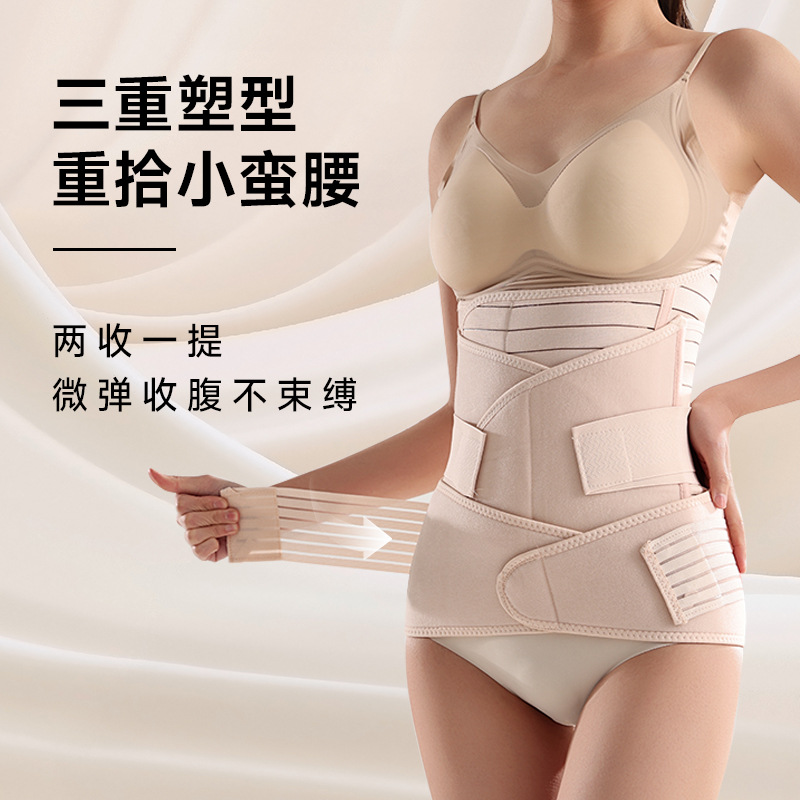 收腹带三件套弹力产后收腹带束腹带收腰顺产剖腹产透气缚带跨境