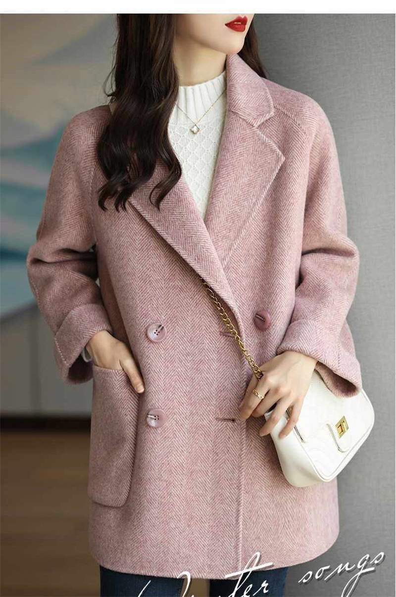 2025秋冬新作ファッショナブルなヘリンボーン柄ルーズでスリムなスタイルの小柄な女性向けの多用途なウールのミドル丈コート