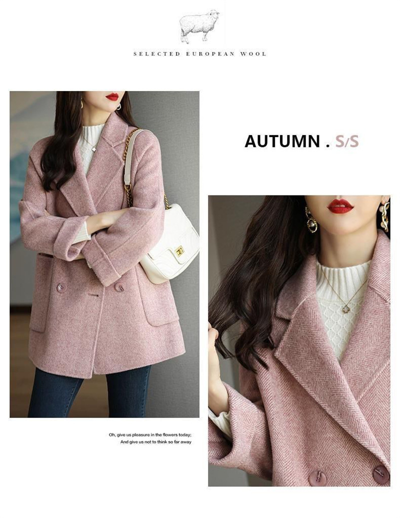 2025 春と秋の新韓国スタイルのファッションヘリンボーンスーツ襟ウールコートミッドレングスウールコート女性のための