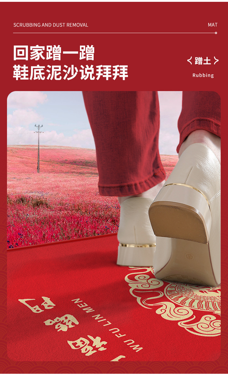 赤いお祝いの入り口のマットは洗濯しないでカーペットを拭くことができます。