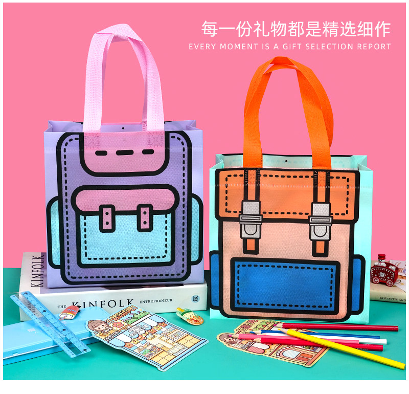 节日可爱卡通书包礼品袋幼儿园礼物手提袋糖果零食包装袋自封袋子
