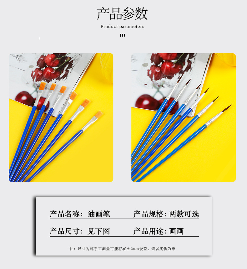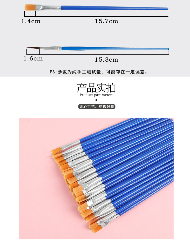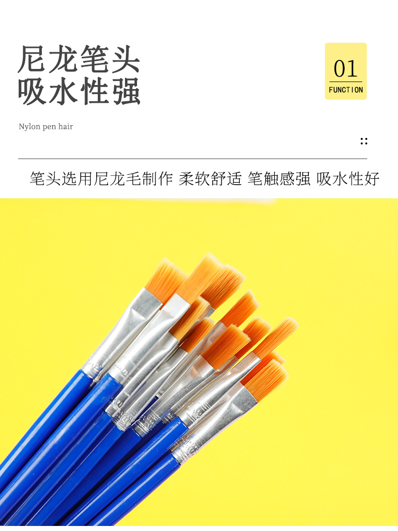 青竹画材尼龙画笔绘画笔套装尼龙绘画笔手绘排笔笔刷 尼龙画笔6只