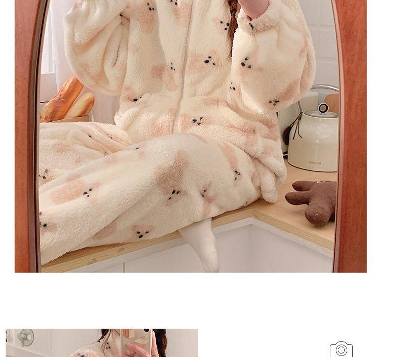韓国版の毛のふわふわした熊の珊瑚の絨毯のパジャマの女性の秋冬の漫画のかわいいカーディガンは部屋の服のスーツを着ることができます。