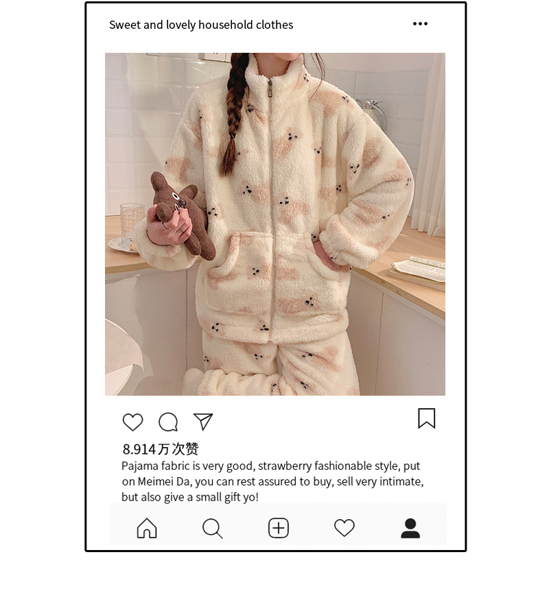 睡衣女秋冬季海岛绒加厚长袖长裤两件套甜美可爱少女可外穿家居服