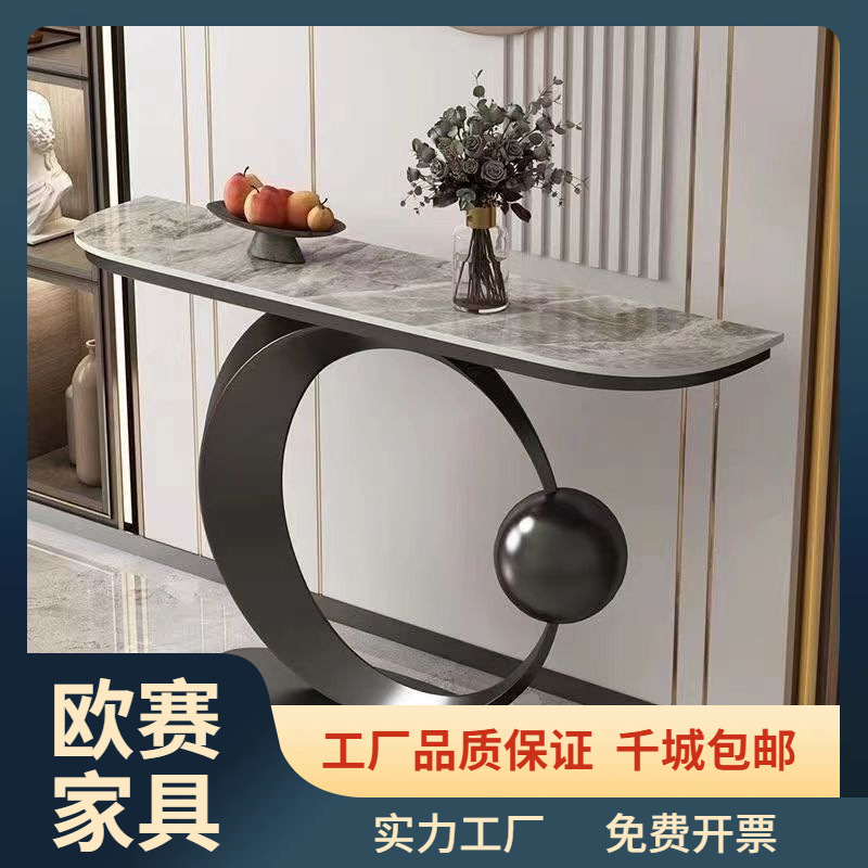 意式岩板创意玄关台入户轻奢玄关桌靠墙半圆端景台极简风格玄关柜