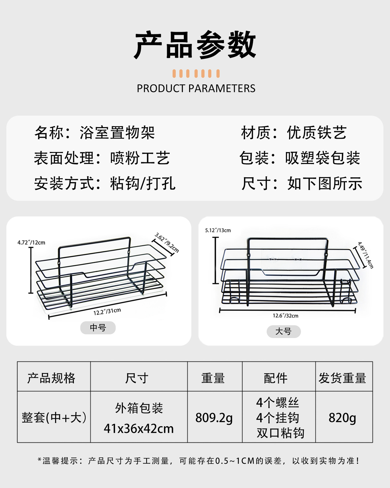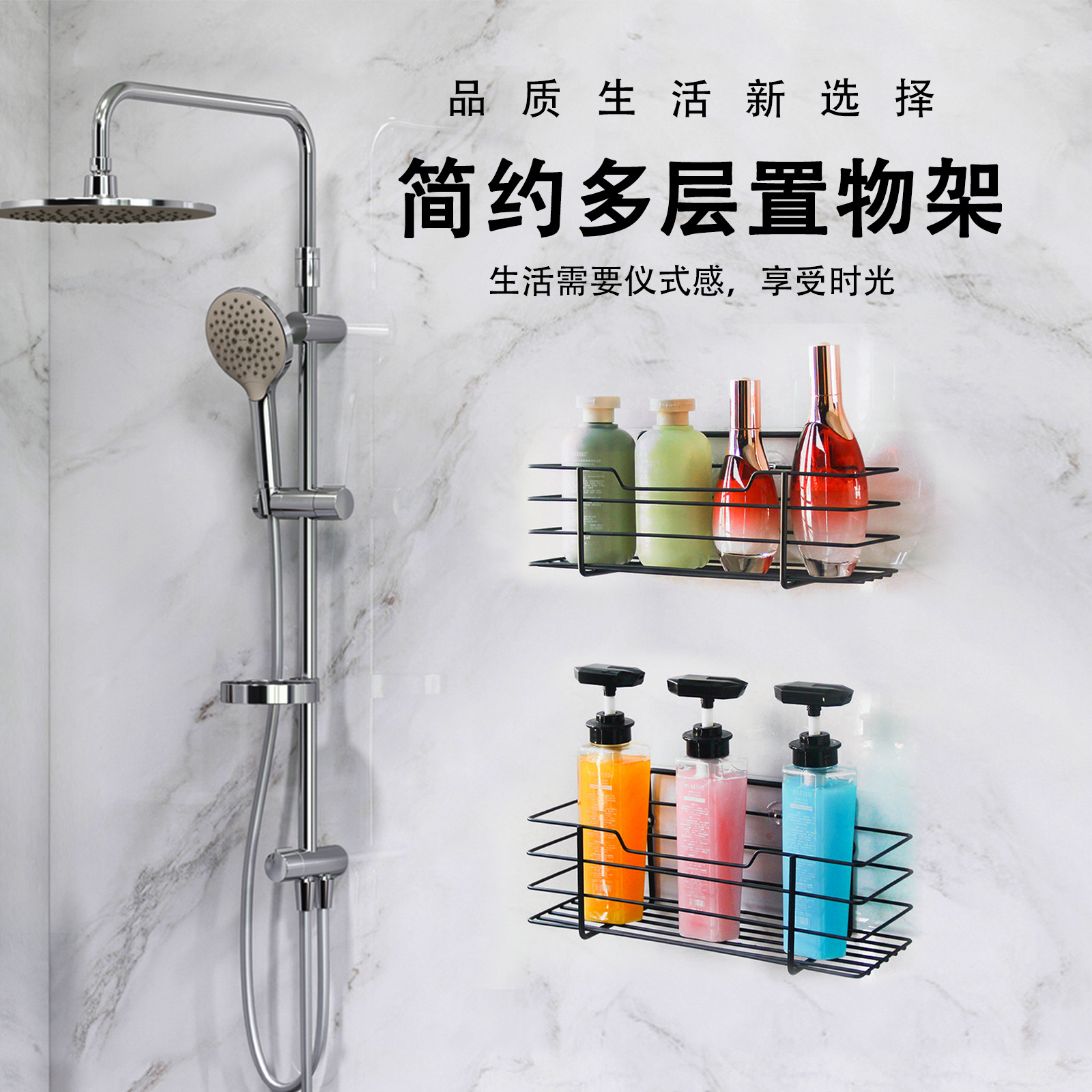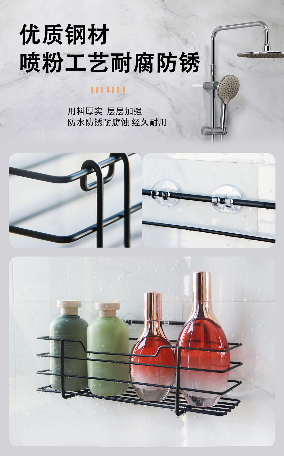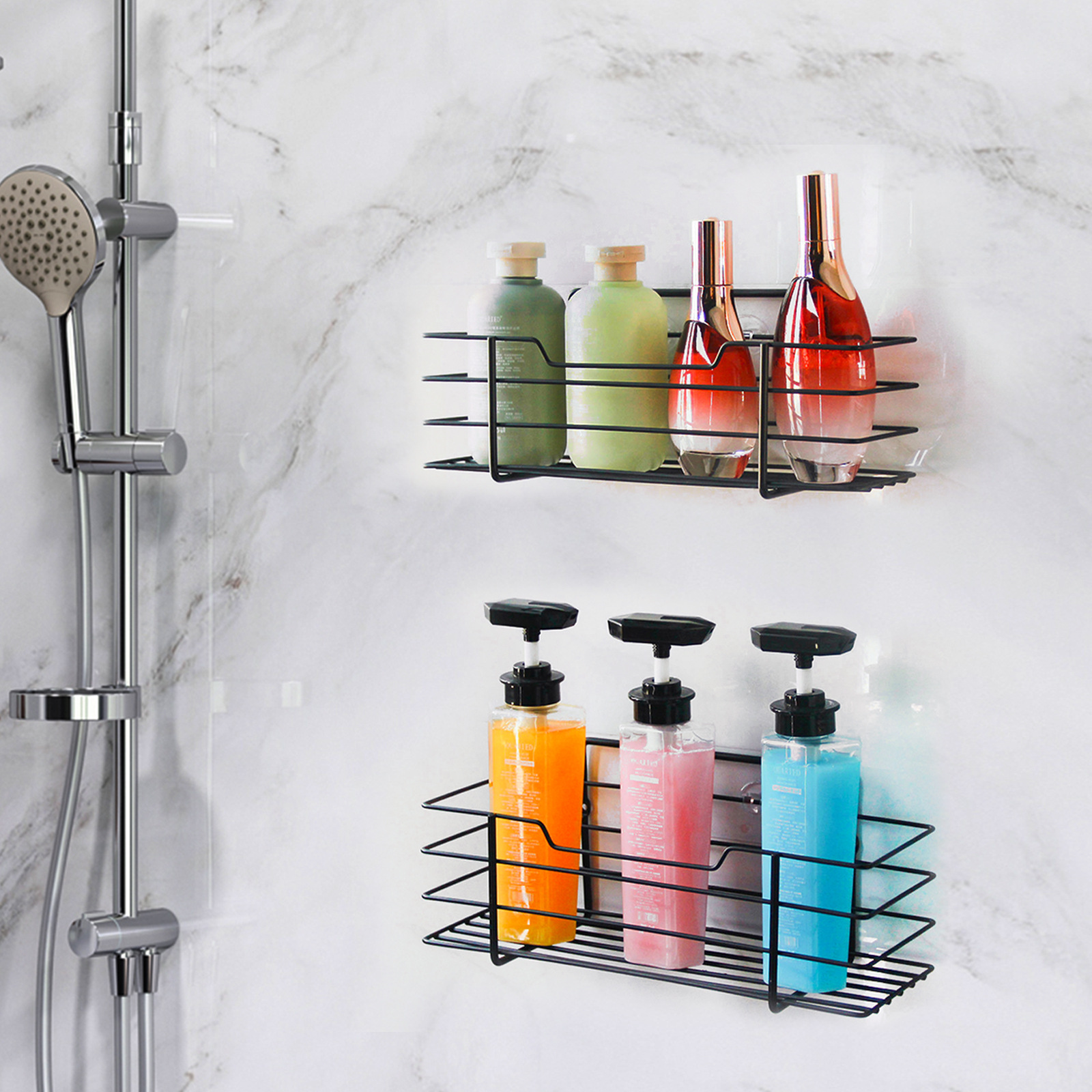 クロスボーダー専用炭素鋼セット浴室収納棚穴なし収納棚浴室収納バスケット1 + 1 2個セット