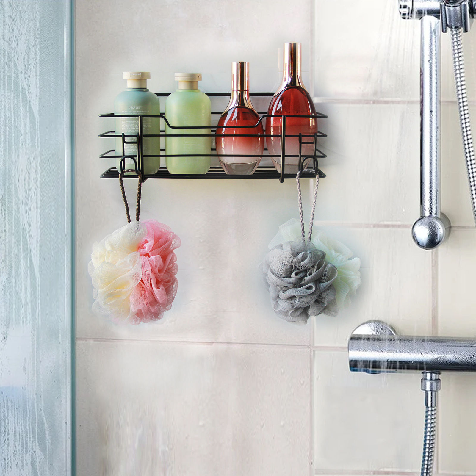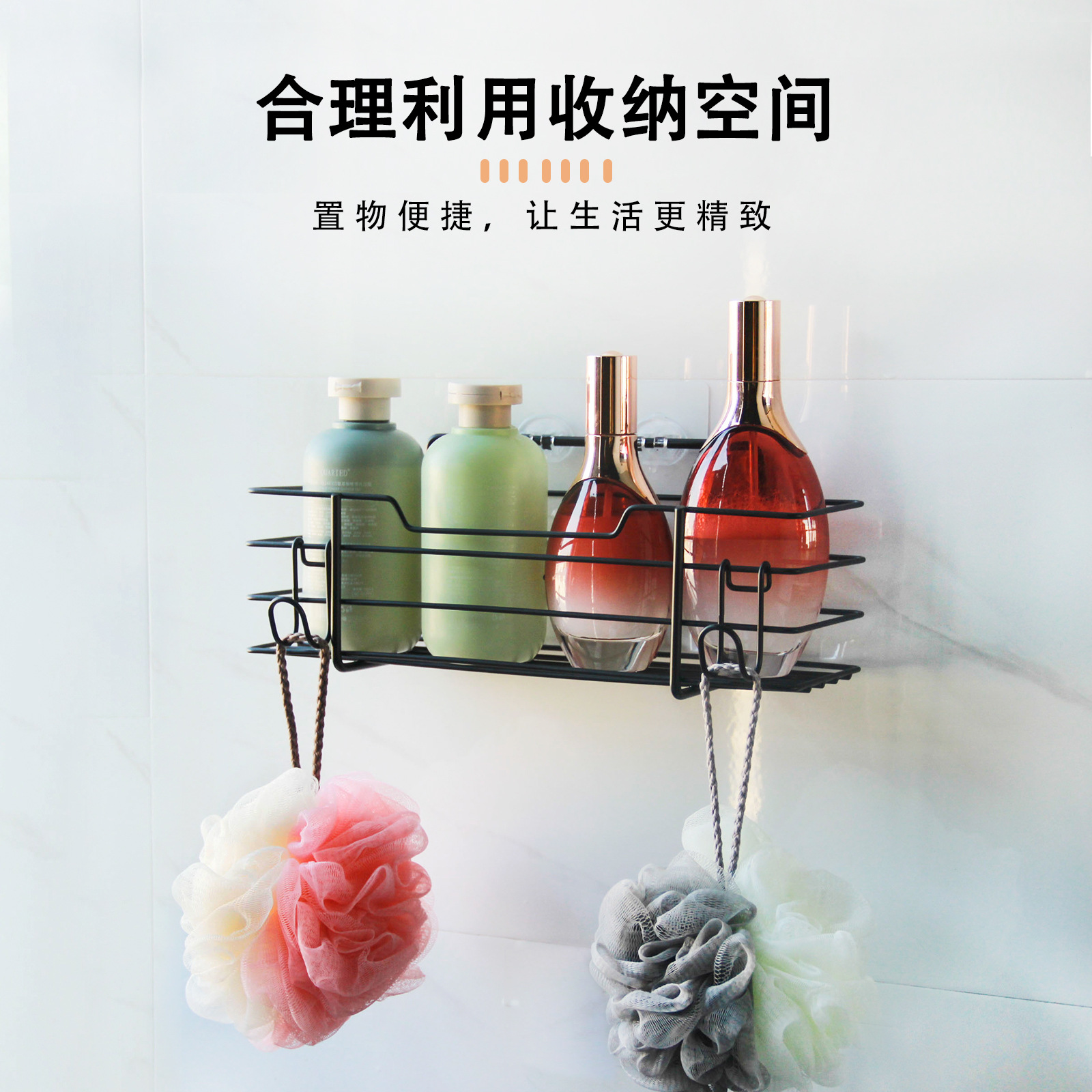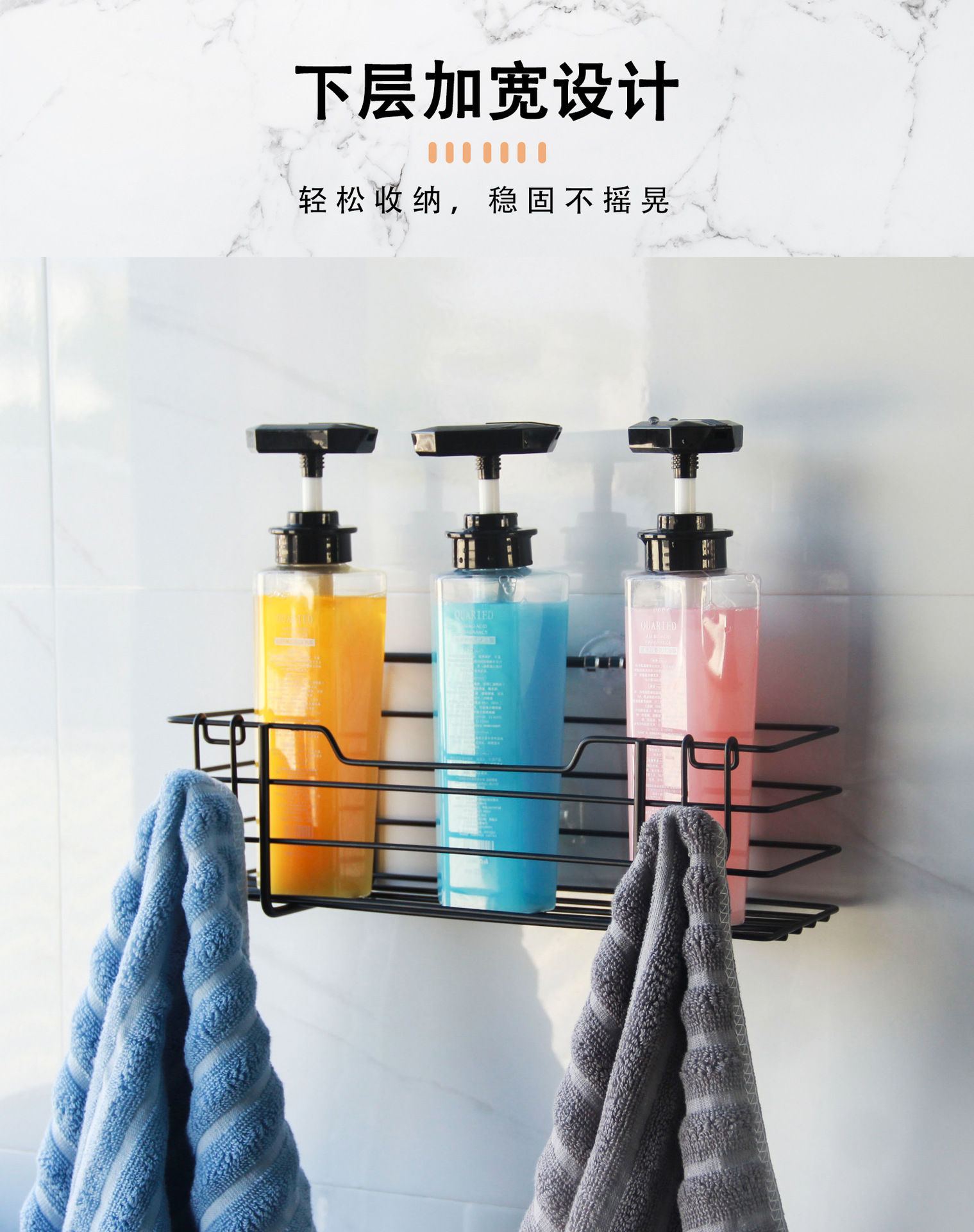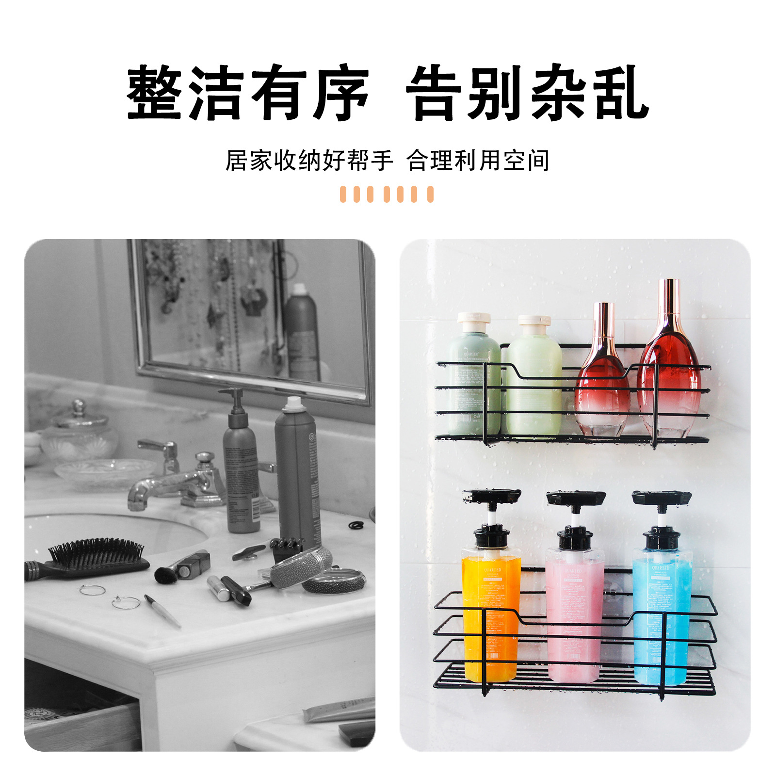 クロスボーダー専用炭素鋼セット浴室収納棚穴なし収納棚浴室収納バスケット1 + 1 2個セット