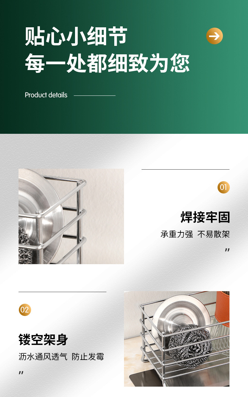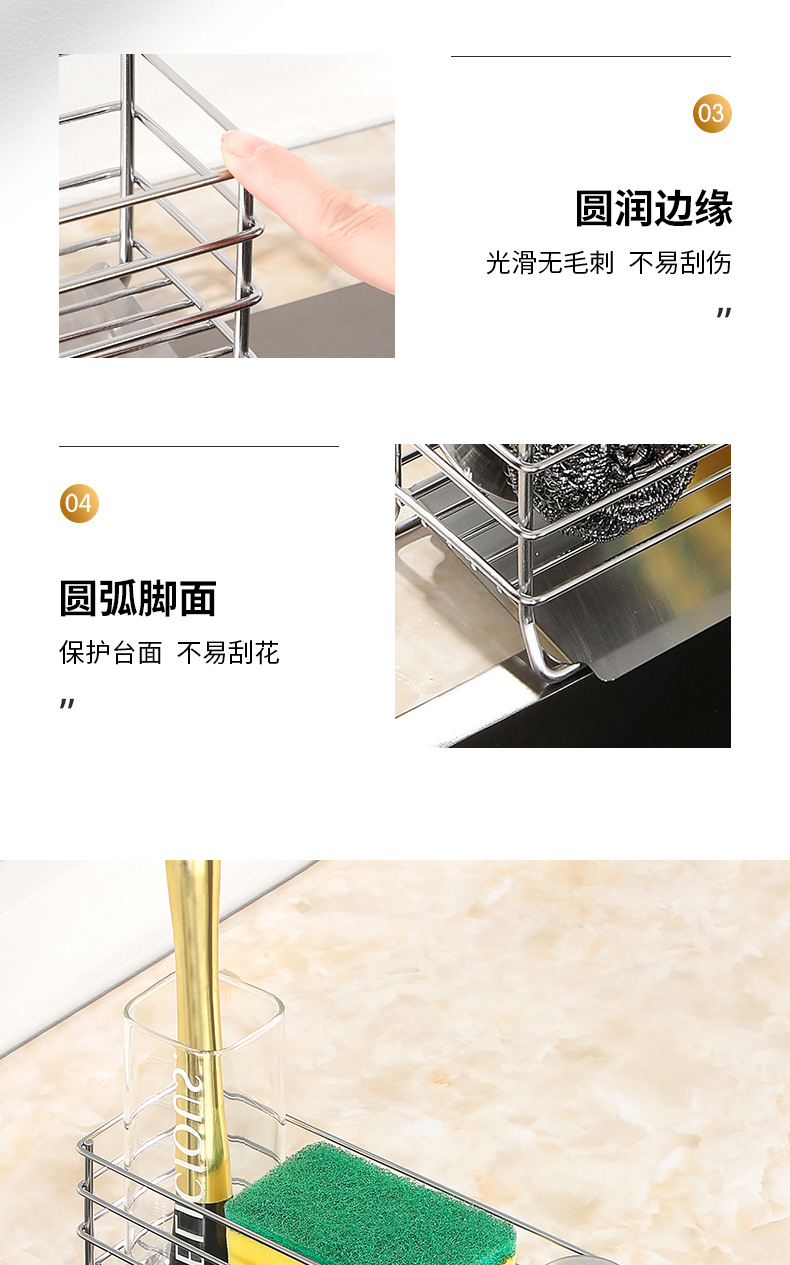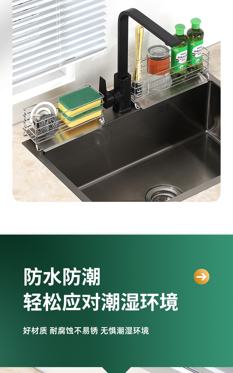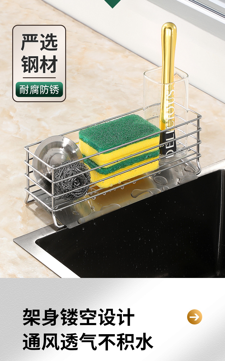 跨境厨房抹布架洗碗池台面水槽置物架304不锈钢洗碗布海绵沥水架
