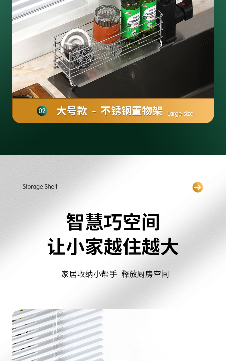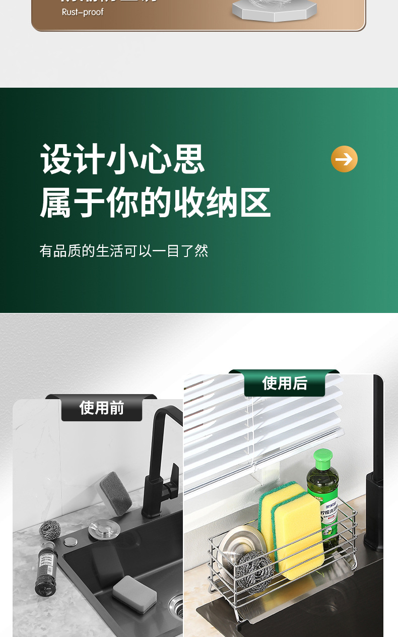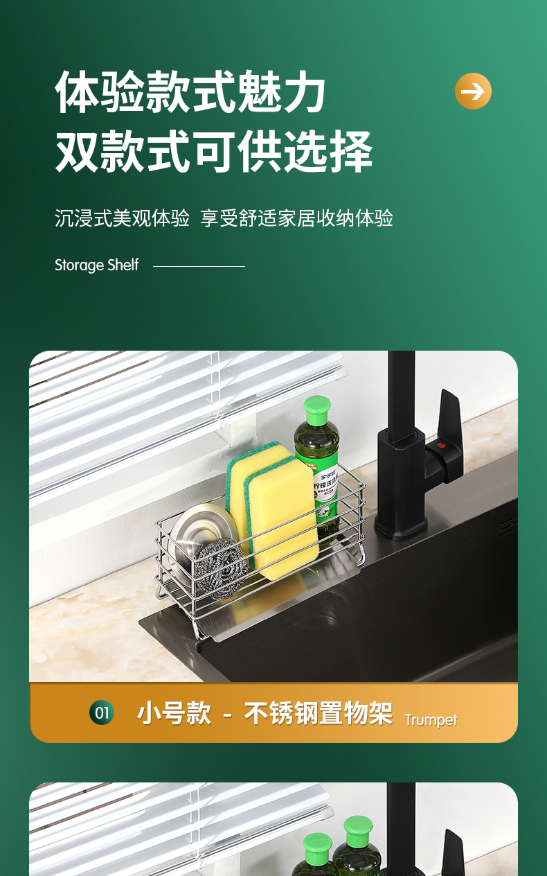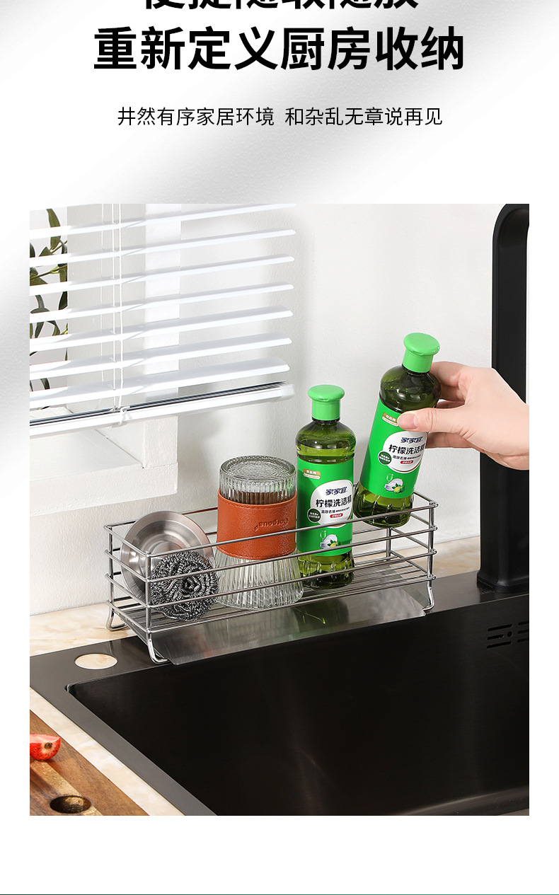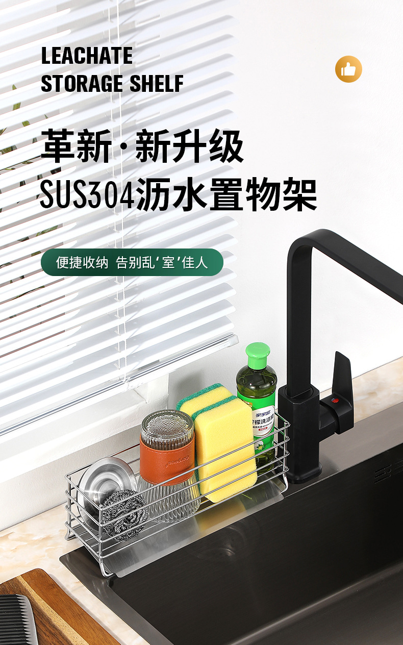 跨境厨房抹布架洗碗池台面水槽置物架304不锈钢洗碗布海绵沥水架