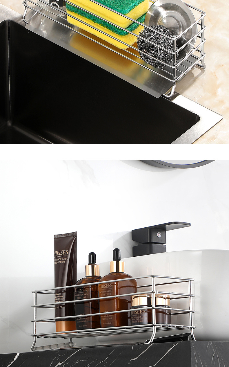 シンプルな透かし彫りの排水棚家庭用キッチン穴開けないステンレススポンジ雑巾食器洗浄水槽収納棚