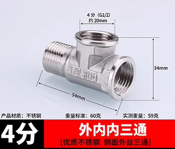 201/304不锈钢接头内外丝弯头三通4分转6分变径接头水管配件