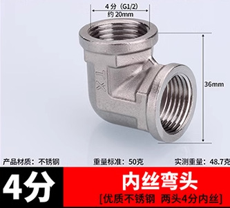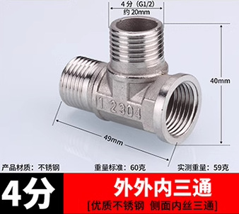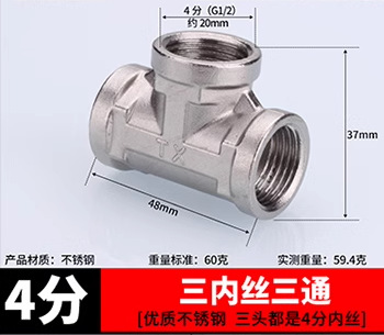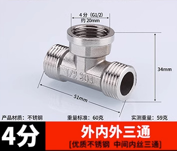 ステンレス継手内糸直接内外糸対糸三方エルボ6分回転4分変径水暖水管部品