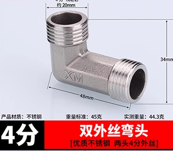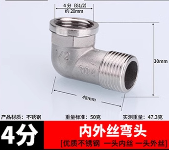 304ステンレス4点厚さ内外リボン活接三方ガス管給湯器エルボ水管継手部品