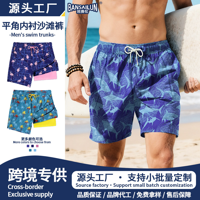 水泳パンツメンズビーチパンツ大人二層ショーツプリント速乾性恥ずかしい漂流防止カジュアル卸売