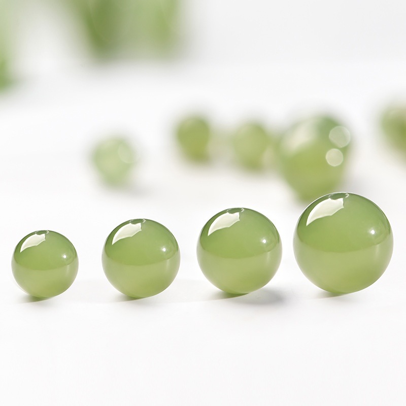 和田玉圆珠晴水绿圆珠散珠手链多宝装饰配珠手串籽料单株圆珠串珠