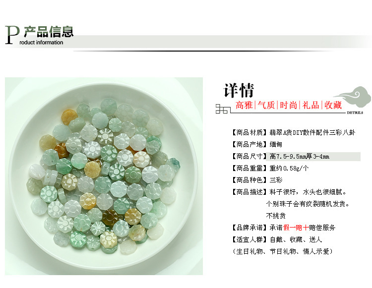 メーカー直販ミャンマー翡翠玉翡翠八卦散件卸売り氷もち種翡翠小八卦手作りアクセサリー