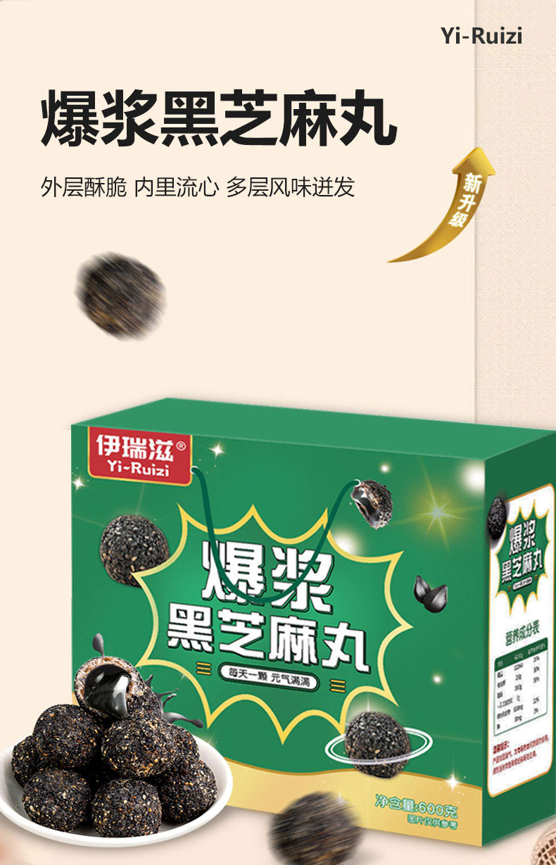 爆糊黒ゴマ丸600gギフトボックス卸売り即食五黒穀物球レジャー間食黒ゴマ球卸売り