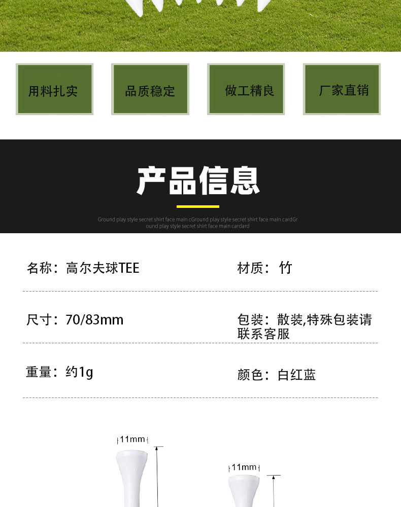 メーカー直供ゴルフボール釘竹釘木釘70mm原木色ボールマットゴルフカラーストライプピンtee
