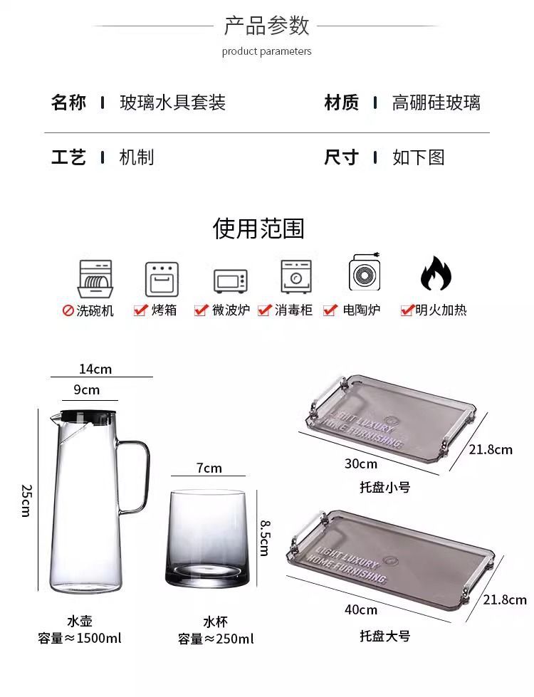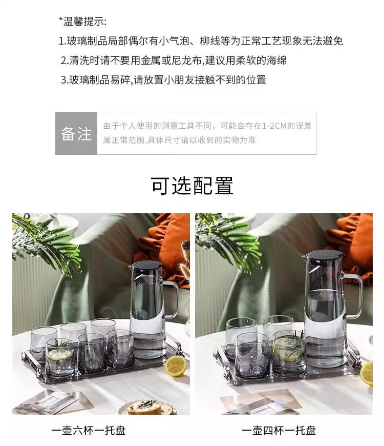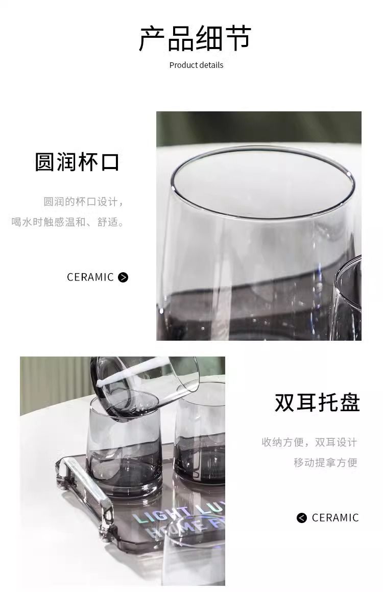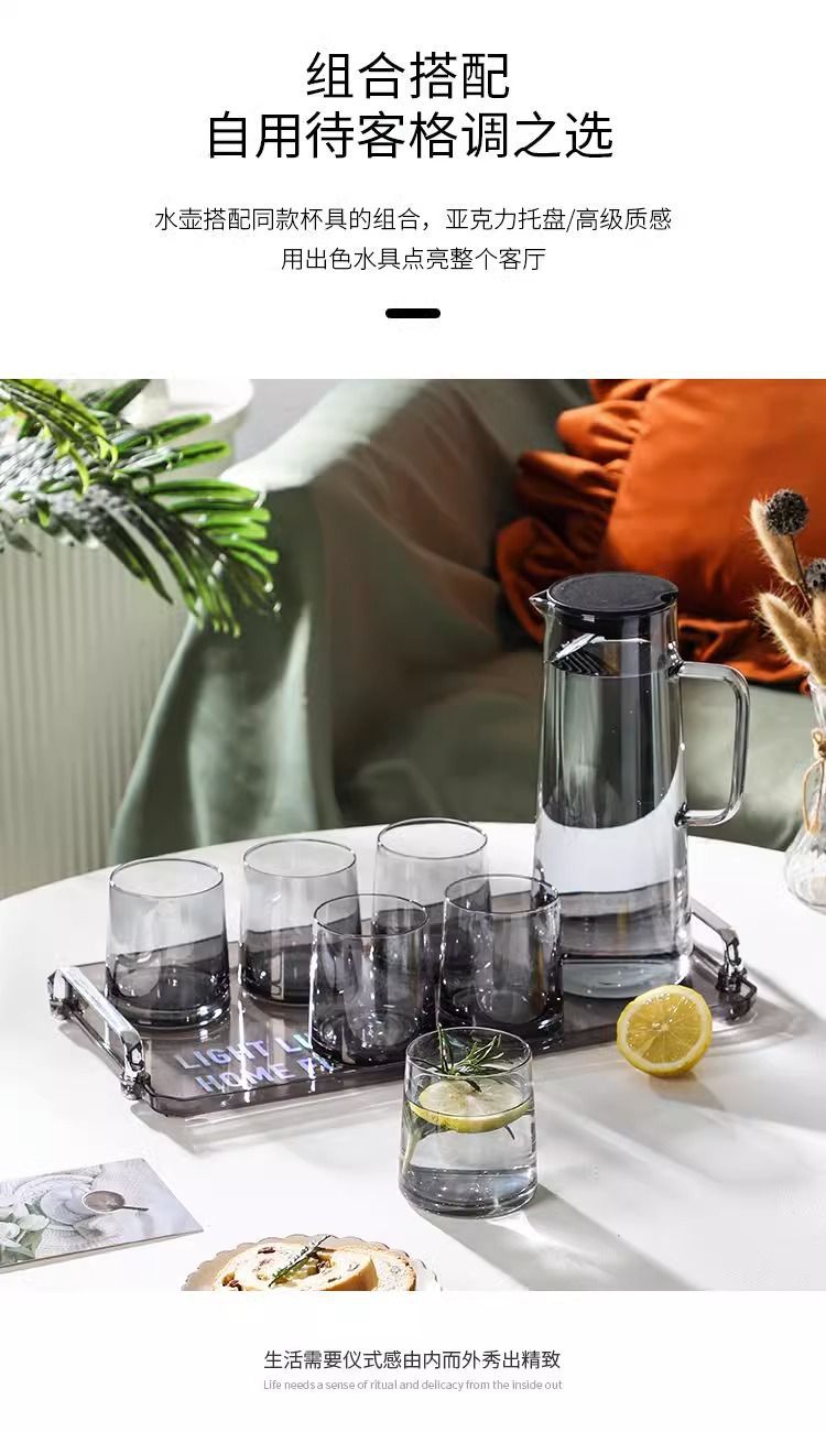 耐高温高硼硅玻璃水具套装家用客厅待客高级感轻奢茶杯水杯冷水壶