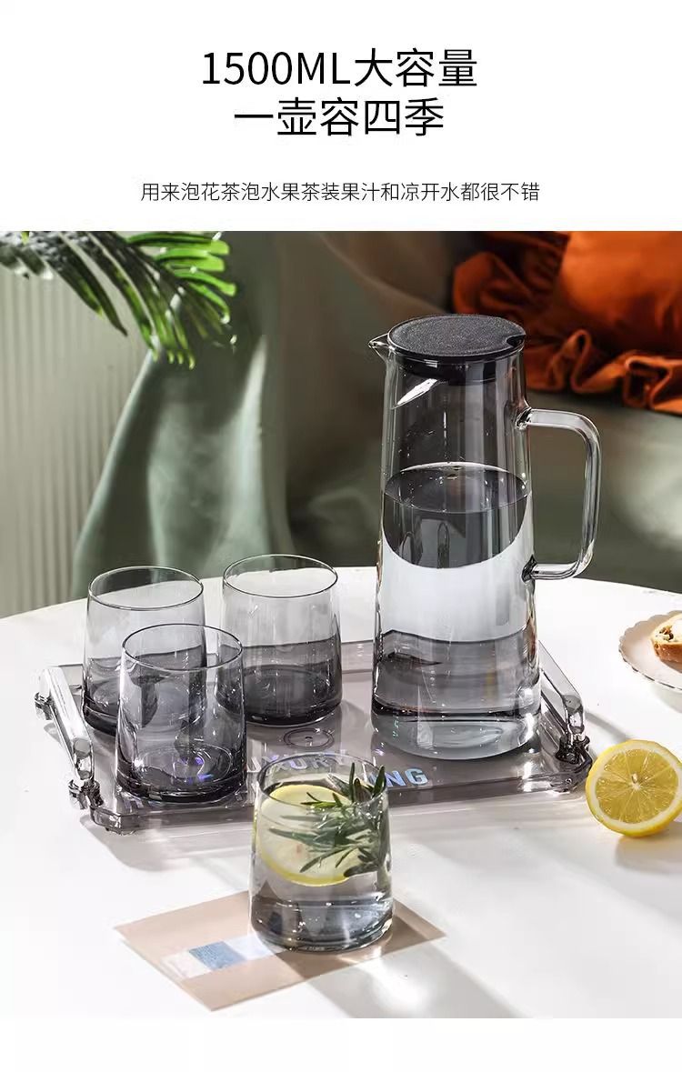 メーカー卸売り耐高温ガラス冷水筒高ホウ素シリコン飲料カップ家庭用浄水器セット冷水筒大容量