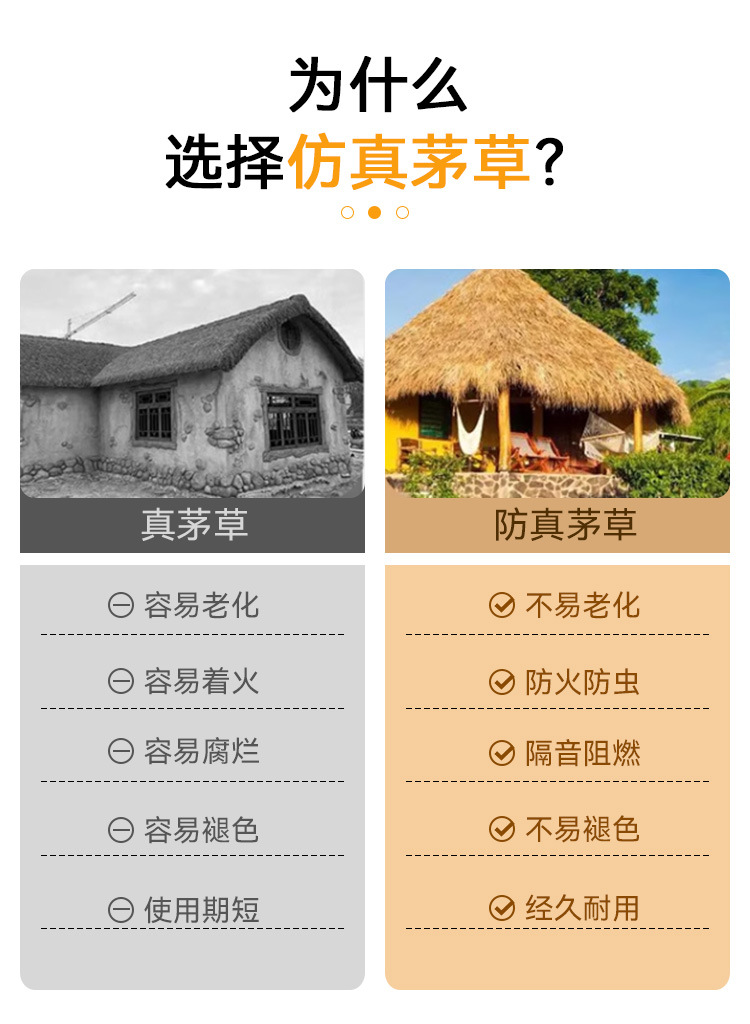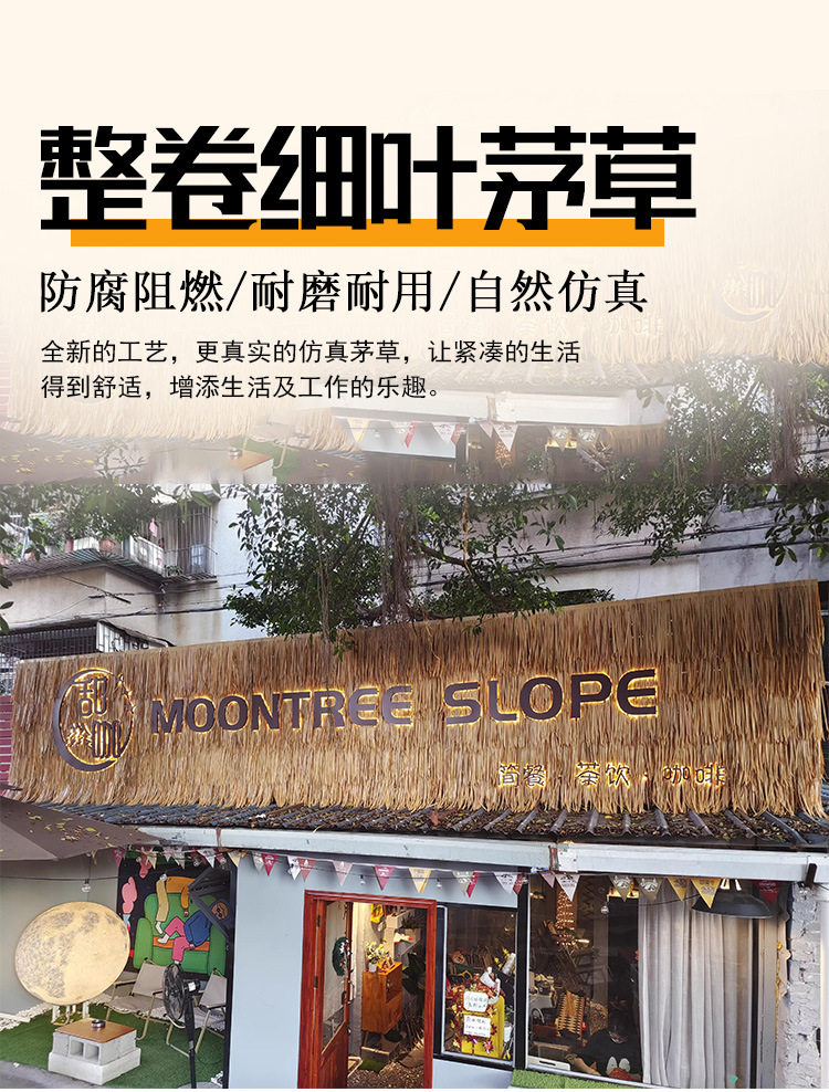 现货批发仿真茅草屋用茅草稻草屋顶阻燃人工装饰屋顶棚户外凉亭