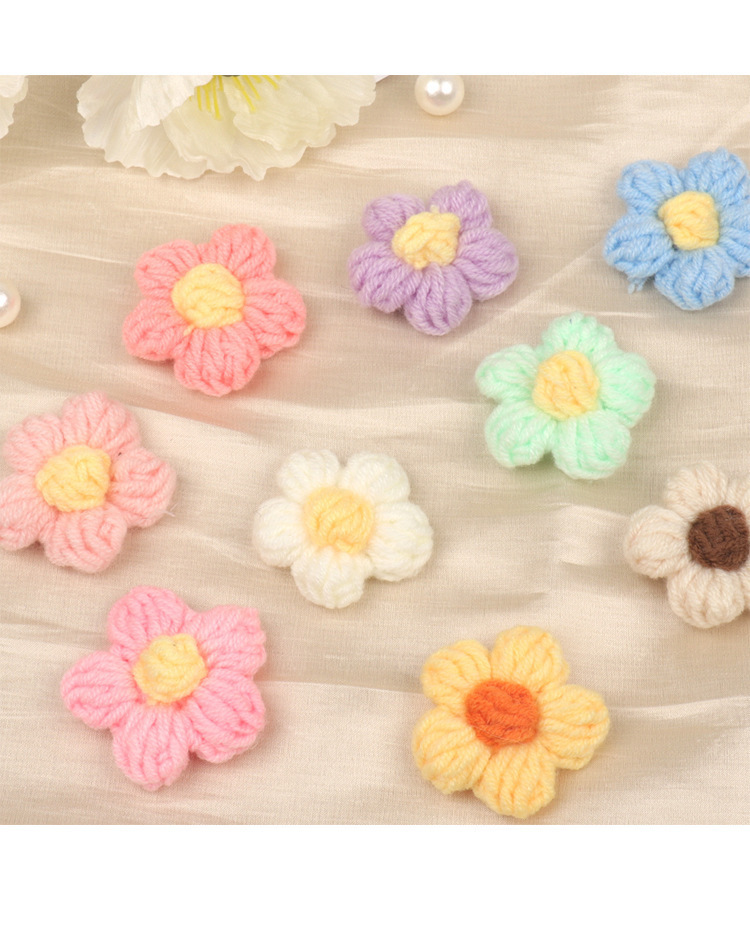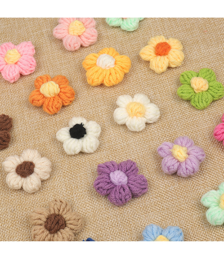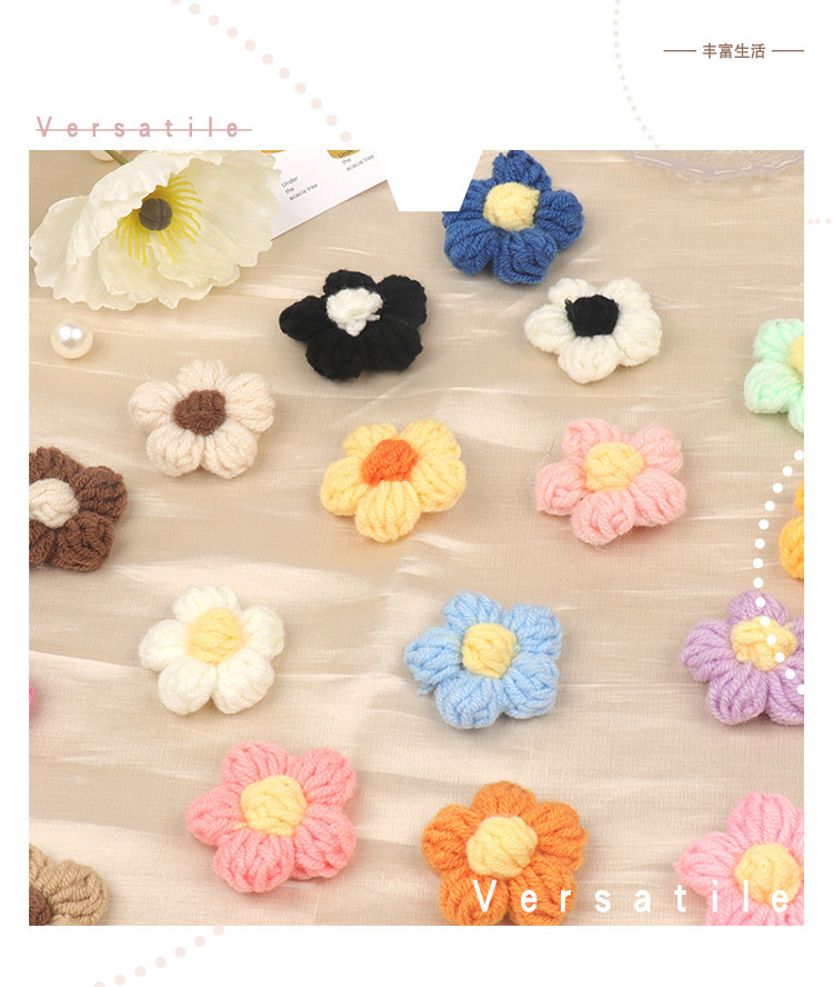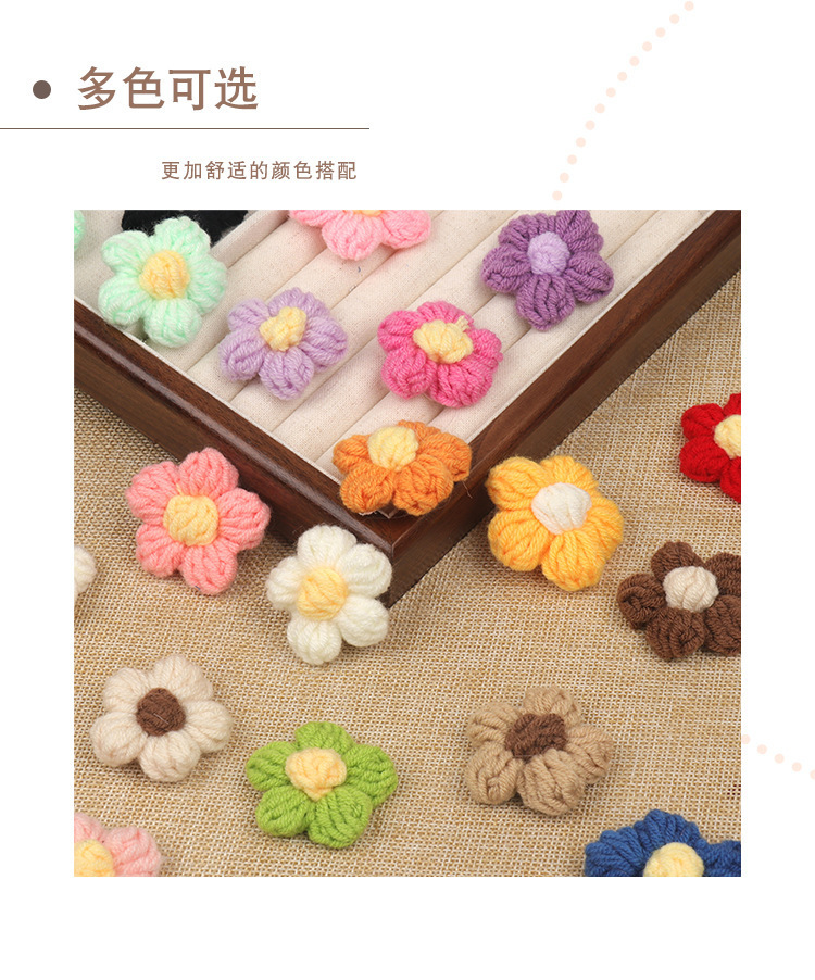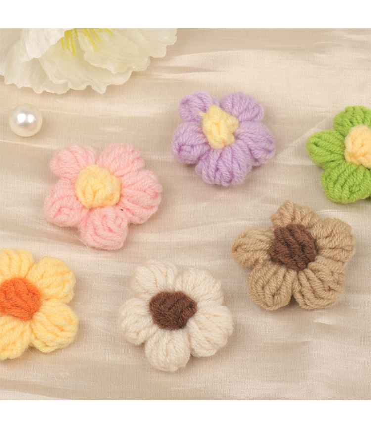 現品の手のフックのメリヤスの花の五弁の花のDIYの毛糸の五弁の花のヘアピンの胸の花の装飾のアクセサリの部品