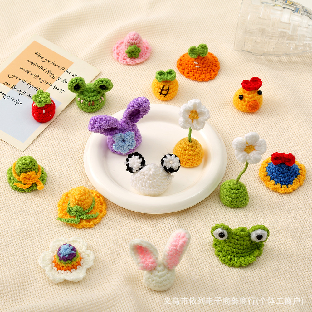 漫画風カエルミニ帽子手作りDIY編みぐるみ着せ替え帽子ペット用ヘッドウェア小さな帽子半完成品アクセサリー