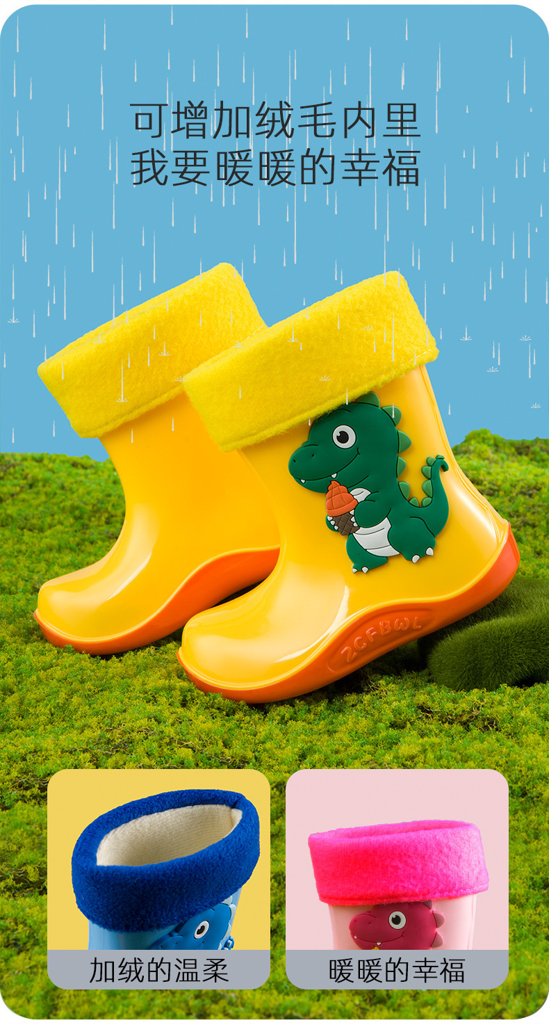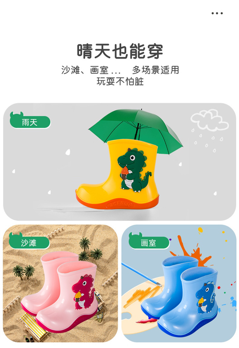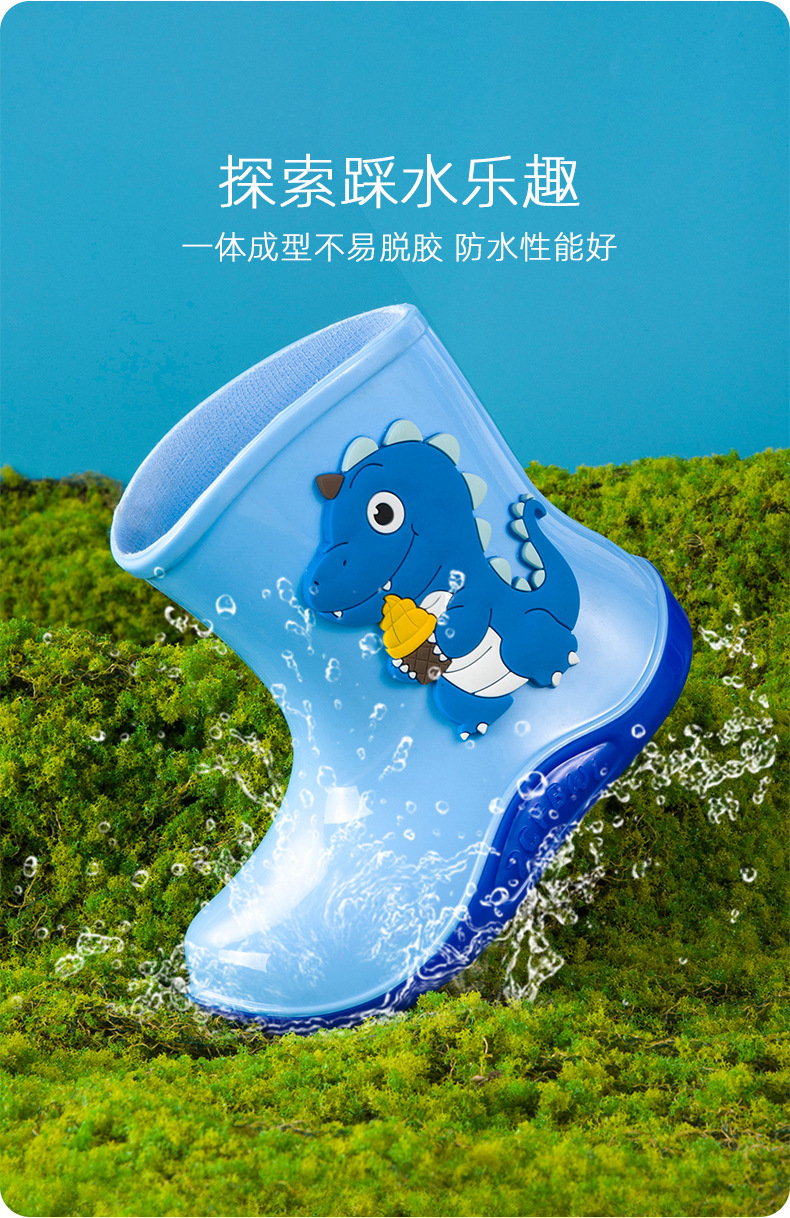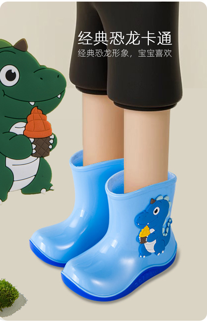 子供の雨の靴の新型の漫画の恐竜のかわいい男女の子供の雨の靴の学生の子供の幼児の水の靴は防水して保温します。