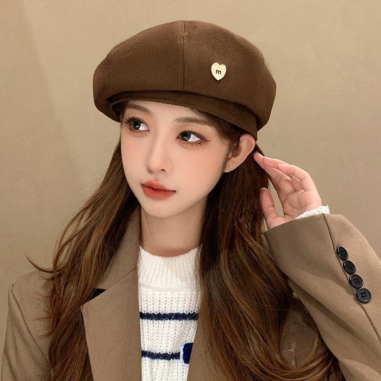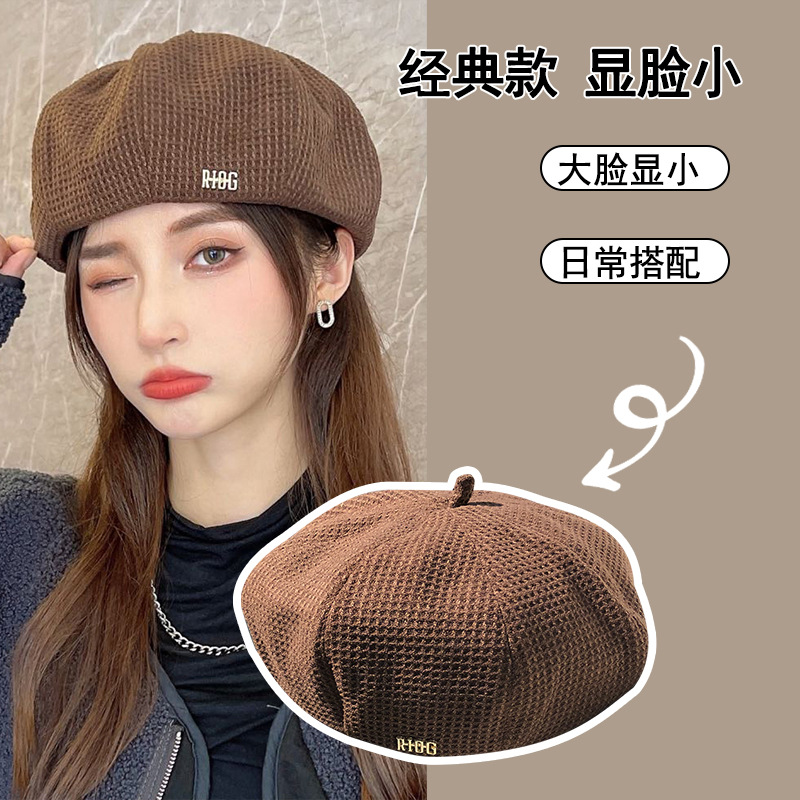 ベレー帽女子春秋モデル2024新サイズの大頭周りに顔を見せている韓系茶色の画家帽秋冬八角帽子