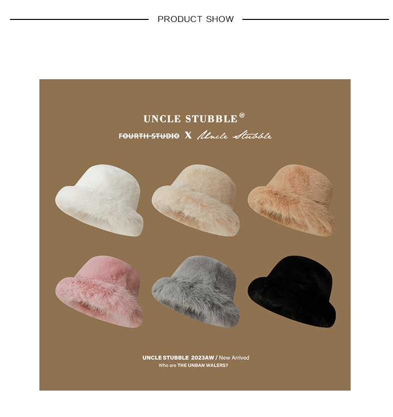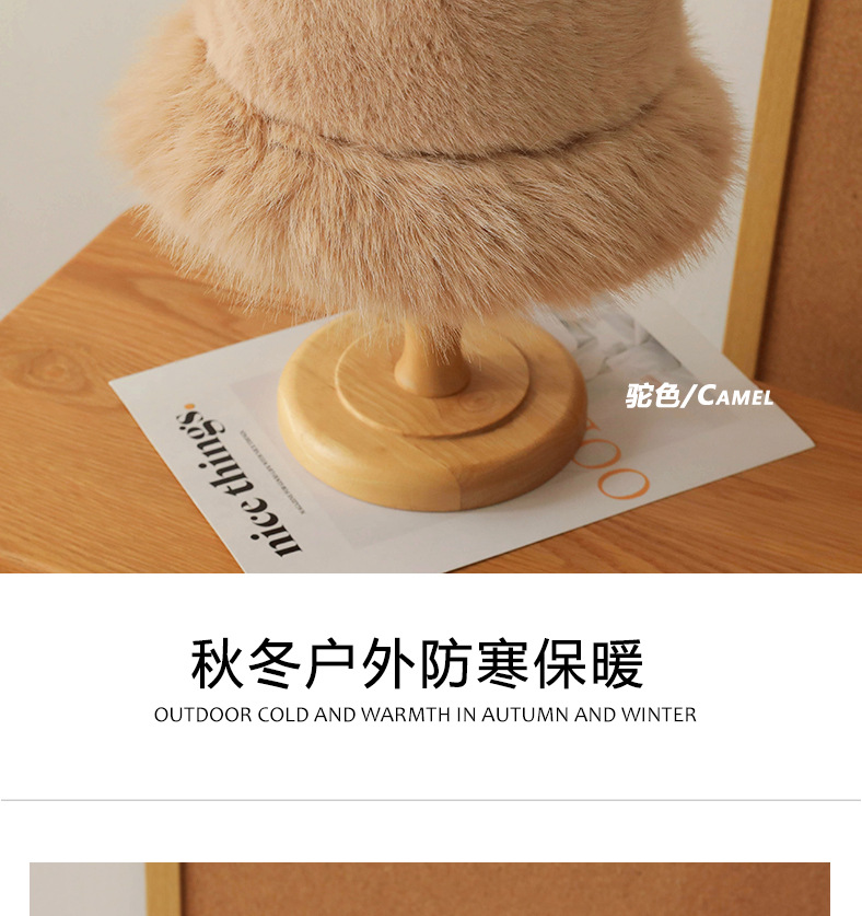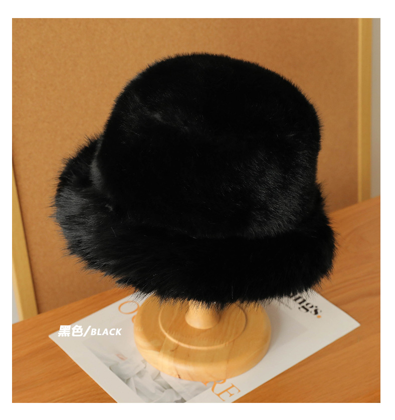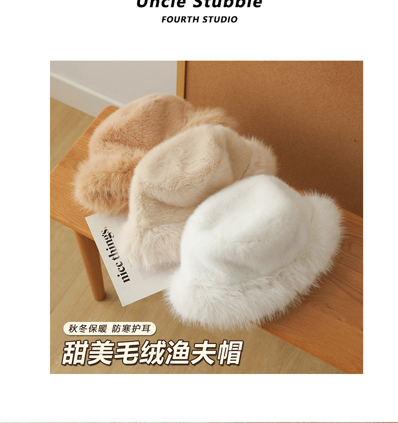 冬季新款毛绒秋冬时尚渔夫帽百搭加厚显脸小帽子保暖出游雪山盆帽