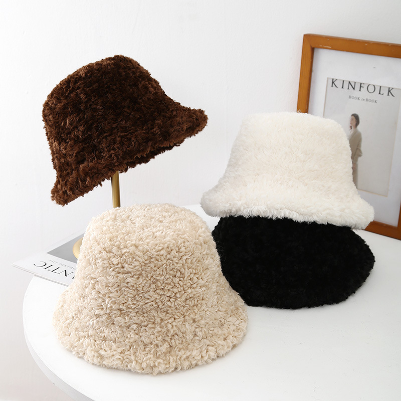 新しい秋冬の韓国版の純色の帽子の女性は羊の小毛の漁師の帽子の韓国版のファッションの保温の毛の絨毛の盆の帽子をまねます。