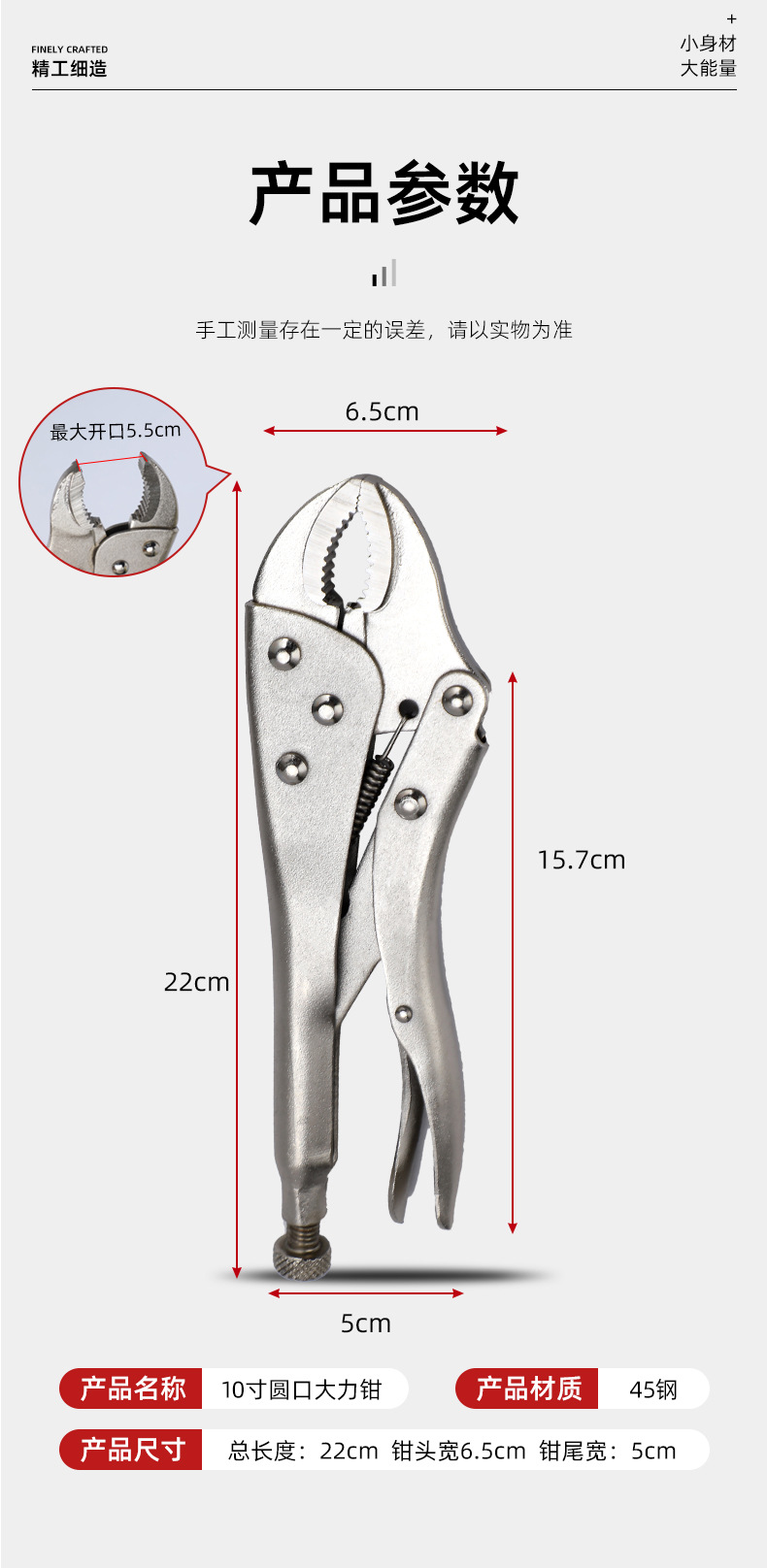 现货批发厂家直销10寸7寸5寸寸圆口大力钳工业级多功能大力钳子圆