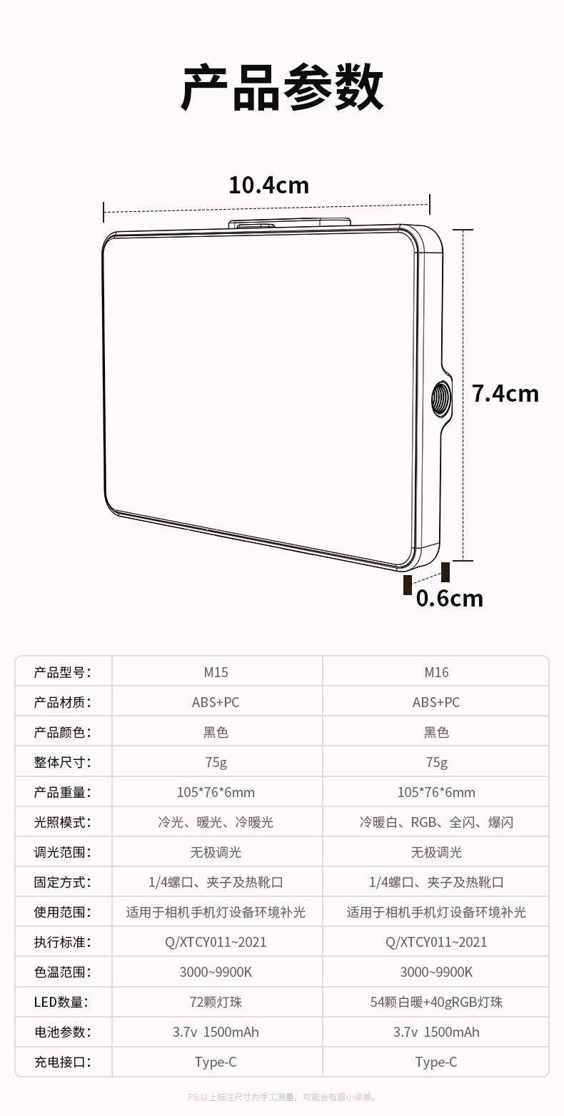 ポケット1500ミリアンペアRGBフルカラーミニ撮影灯ledランプ屋外撮影補助灯生放送ソフトライト