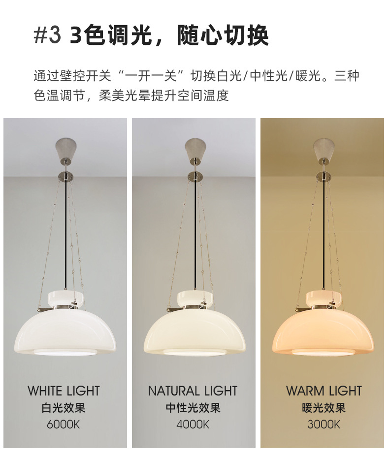 ライトの色 クロームカラー + ミルクホワイト【d40 * 25*120cm】白色光ハンギングワイヤー2mハンギングチェーン77cm,クロームカラー + ミルクホワイト【d40 * 25*120cm】暖光吊りライン2m吊りチェーン77cm,クロームカラー + ミルクホワイト【d40 * 25*120cm】三色吊りコード2m吊りチェーン77cm