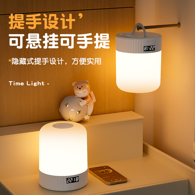 インテリジェント音声小型テーブルランプソケット目覚まし時計機能壁ランプ寝室のベッドサイドリモコンマルチスピード調光ナイトライト