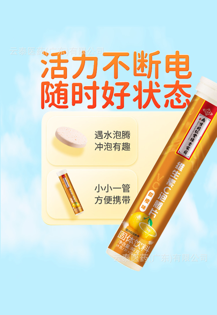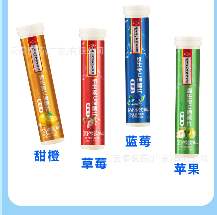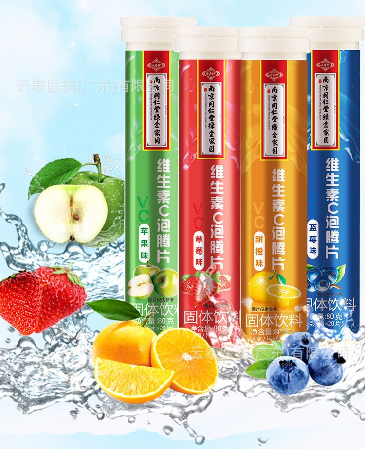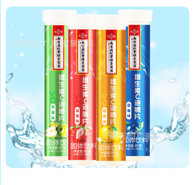 南京同仁堂緑金家済寿祥ビタミンc泡騰片固体飲料甘いオレンジブルーベリー味20錠