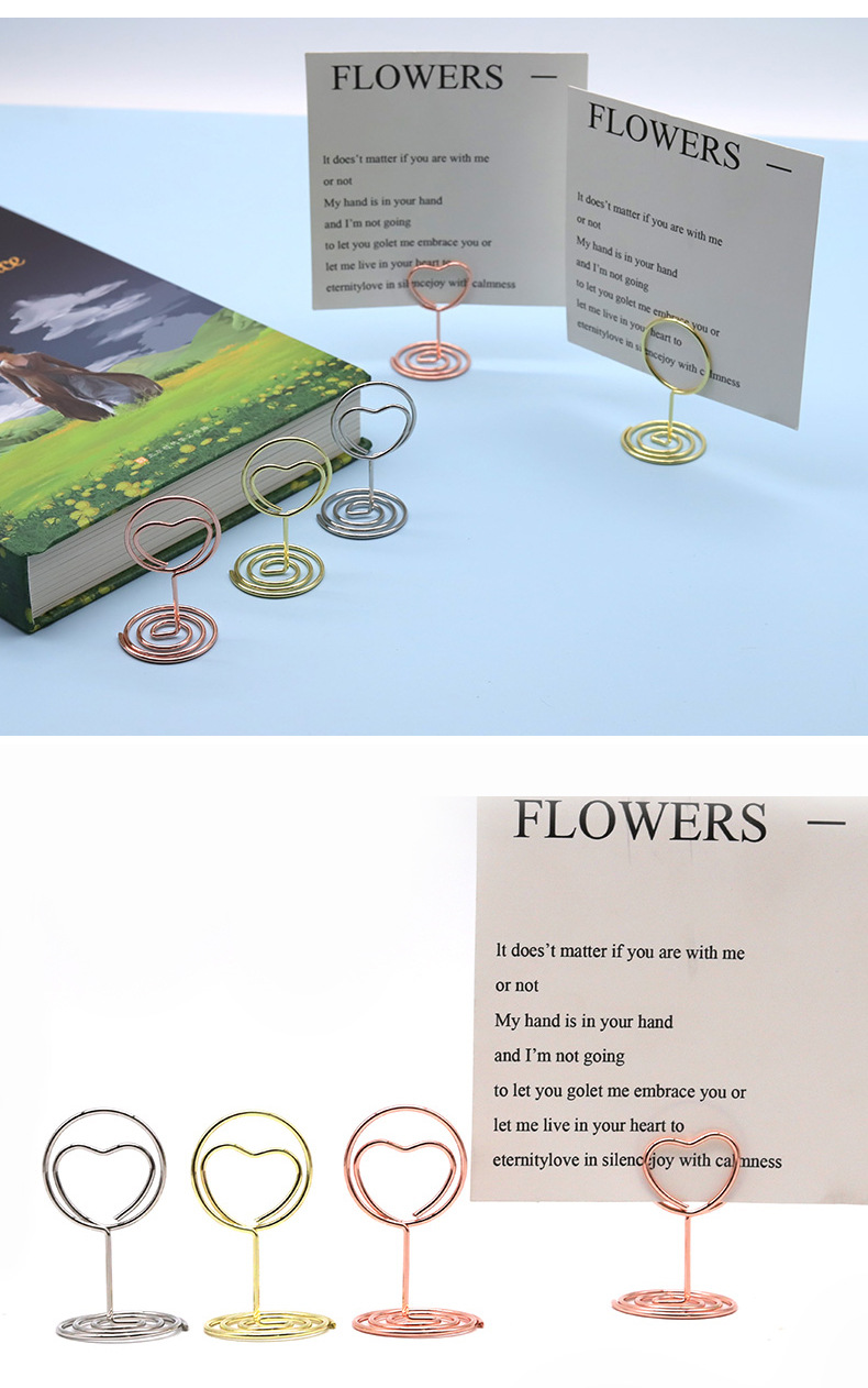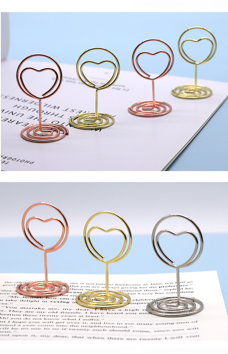 クリエイティブ愛の丸い名刺ホルダー縦型ラベルメッセージホルダーデスクトップ写真クリップクリップ金属便箋クリップ