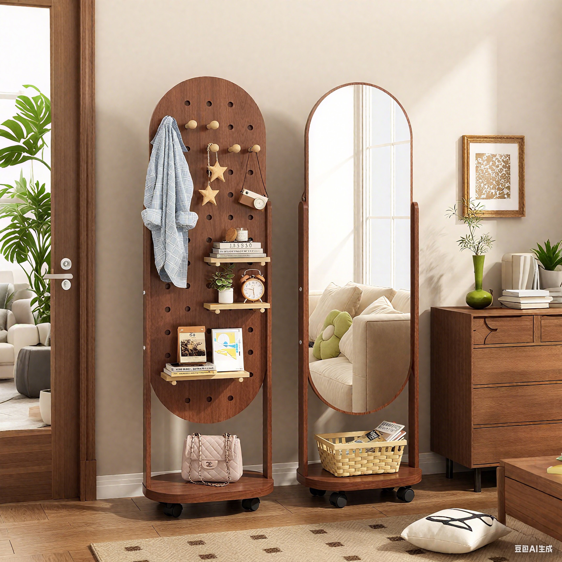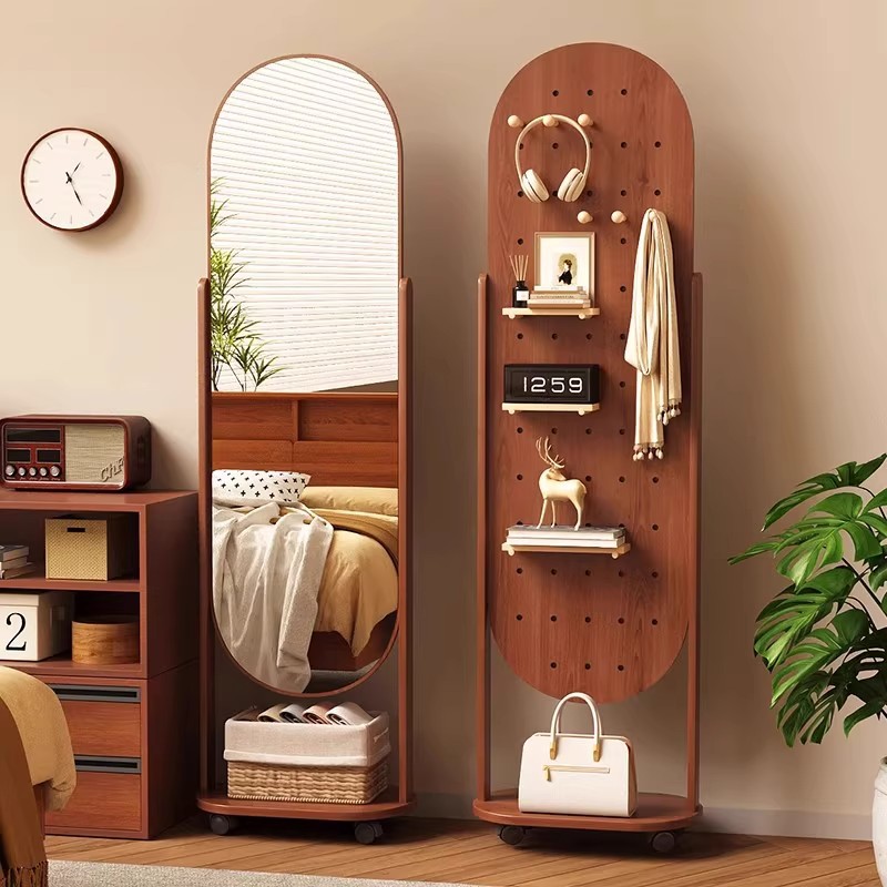 洞洞板全身镜可移动不变形隐藏式旋转推拉穿衣镜衣帽架一体落地镜