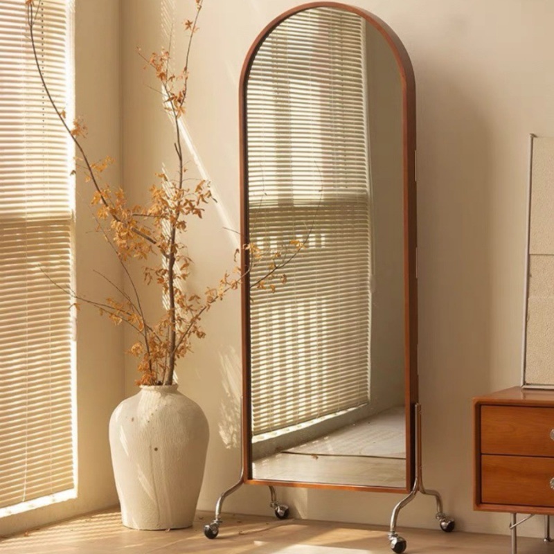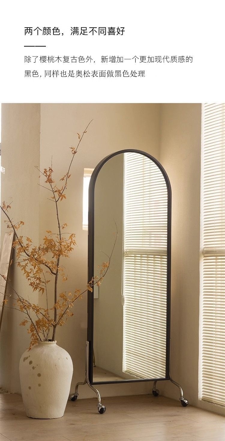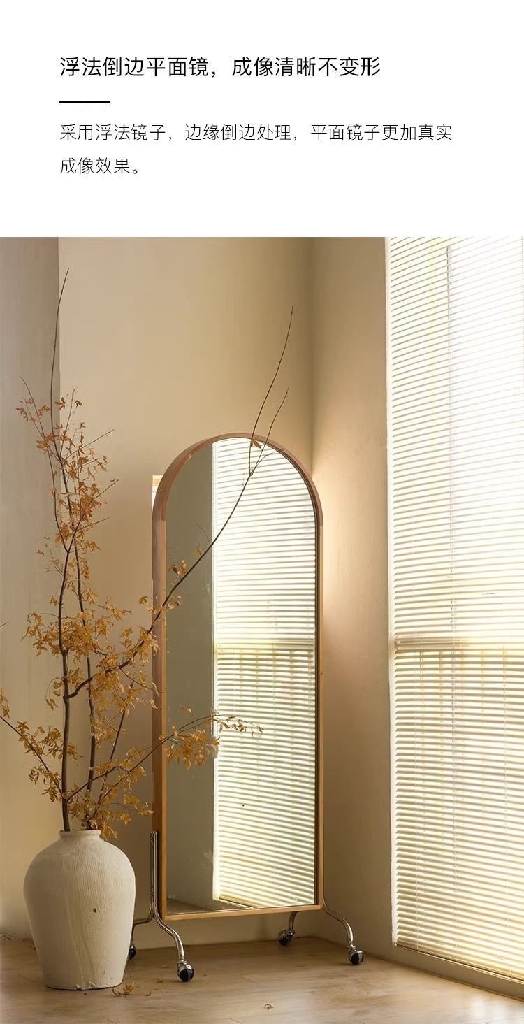 日式侘寂实木全身镜卧室客厅可移动落地镜穿衣镜工厂一件批发