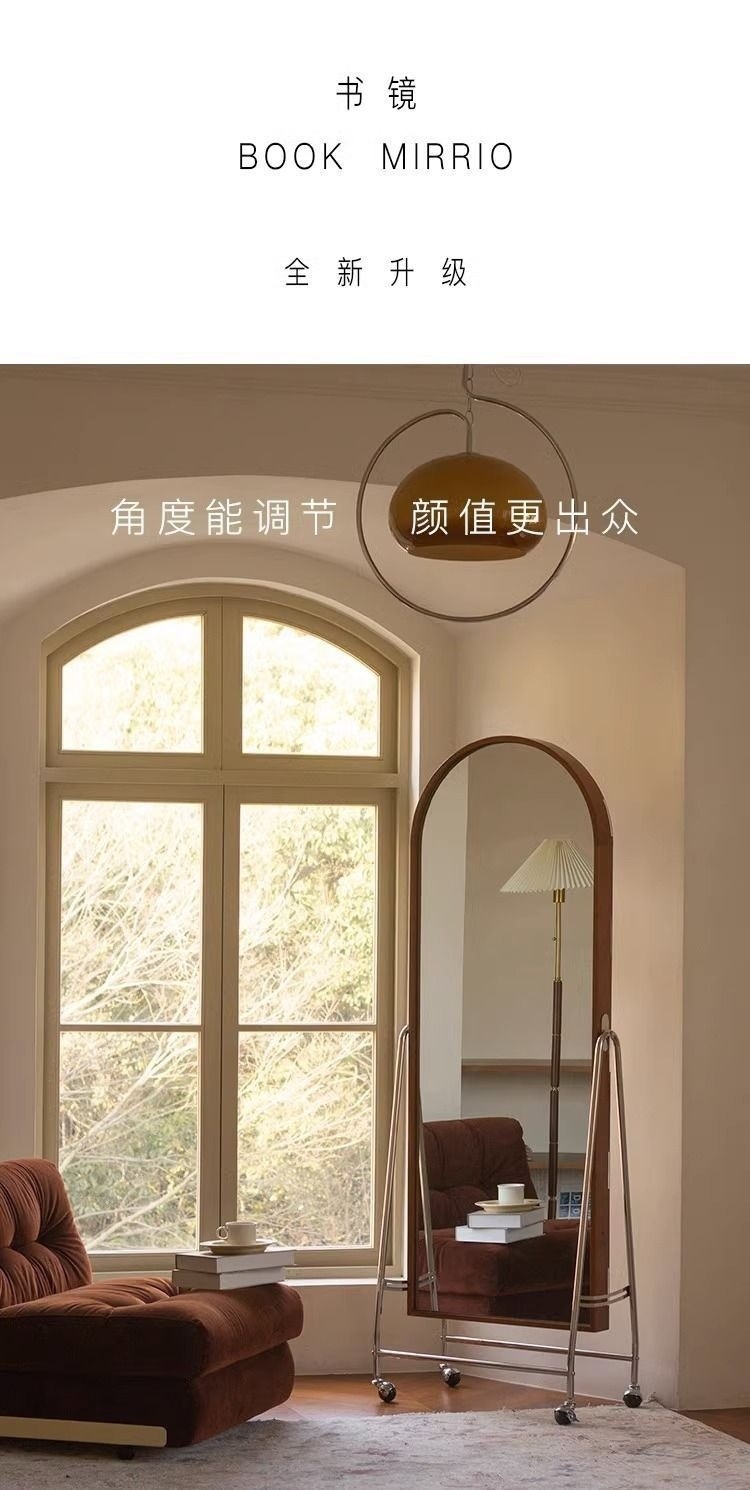 简约试衣镜子杂志架两用收纳家用落地镜可移动穿衣镜旋转全身镜