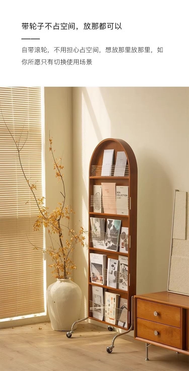 古风复一体杂志子全身镜家用穿衣镜移动中书架置物可旋转落地实木