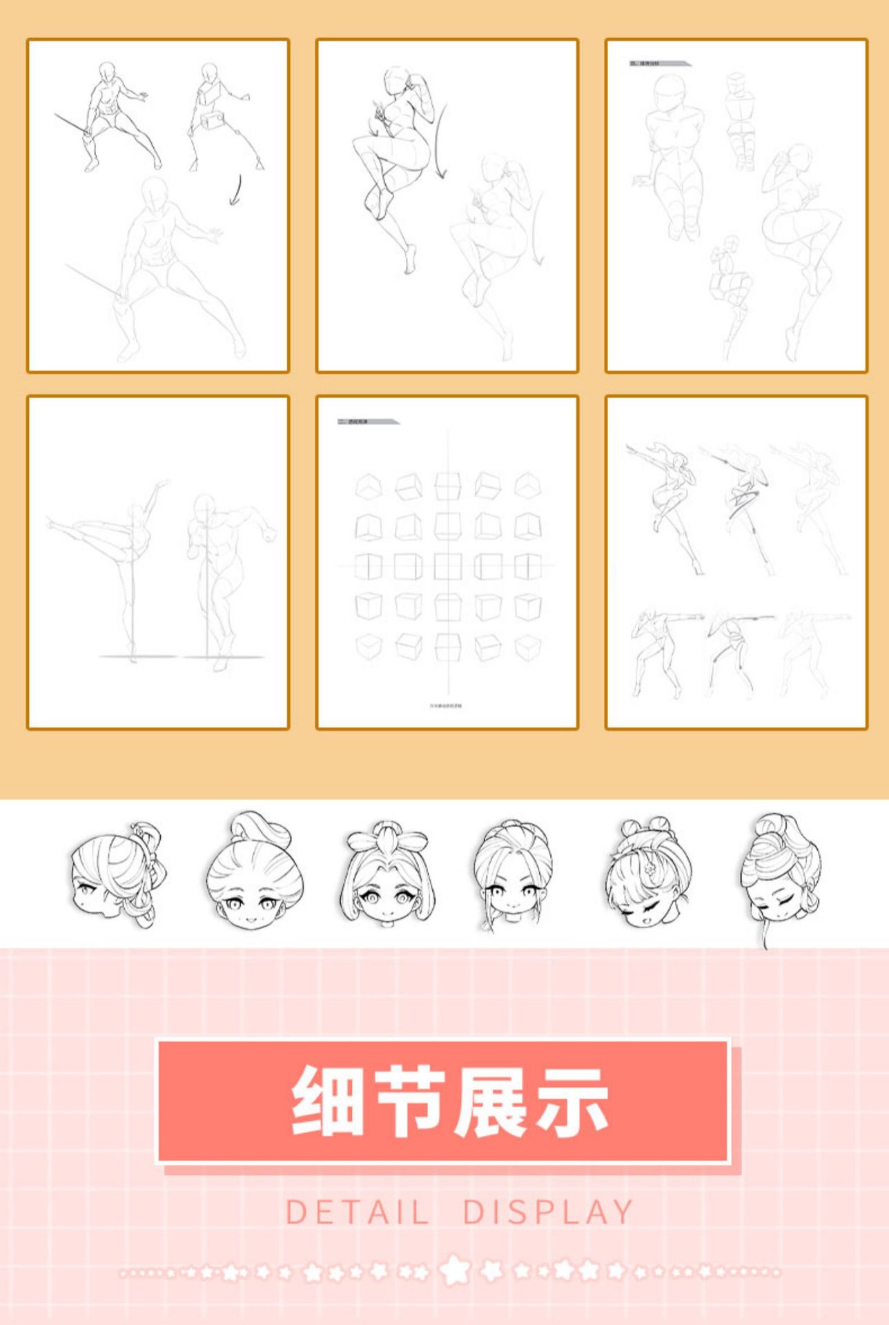 漫画の入門練習帳は本のアニメキャラクターの手描き本の二次元美少女の動的構造のスケッチをなぞらえます。