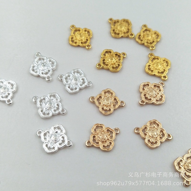 新しい合金製中空ペンダント、正方形の装飾品、ヘアアクセサリー、ジュエリーネックレス、四弁花DIYジュエリーアクセサリー