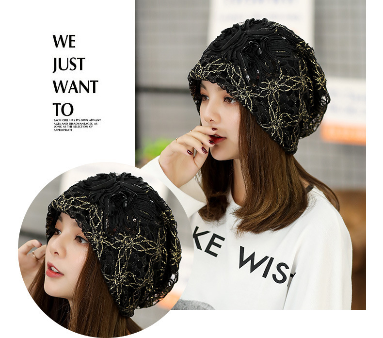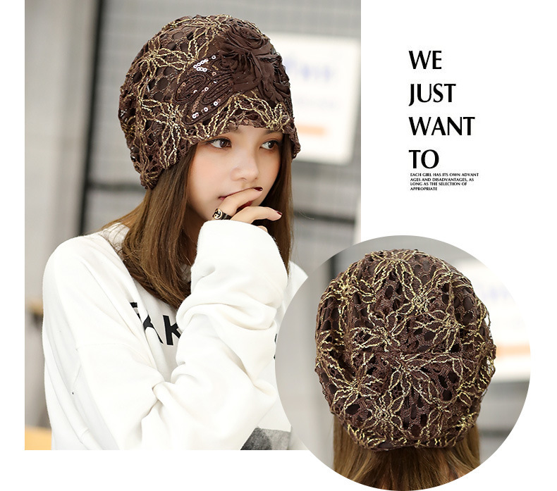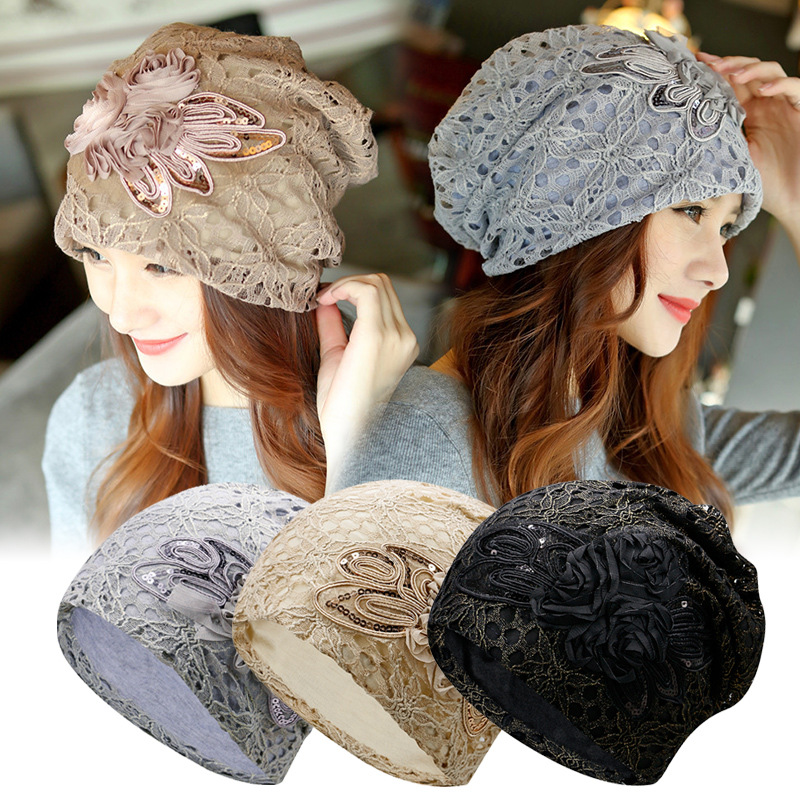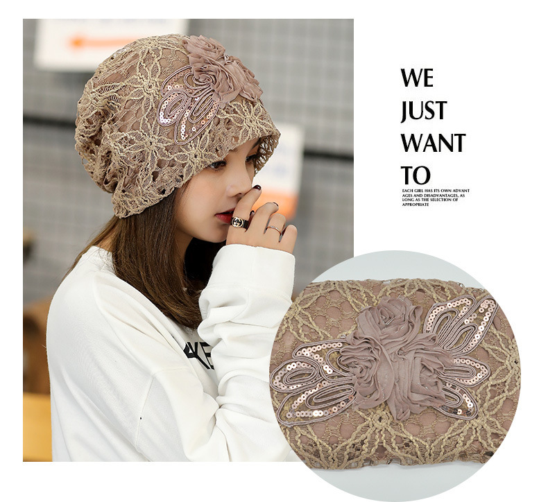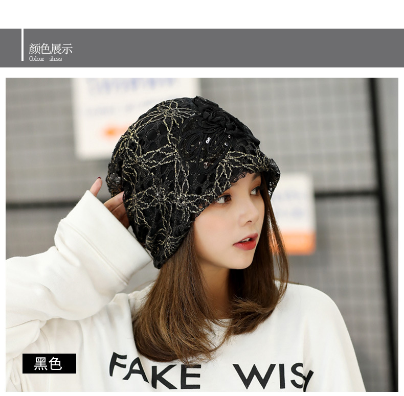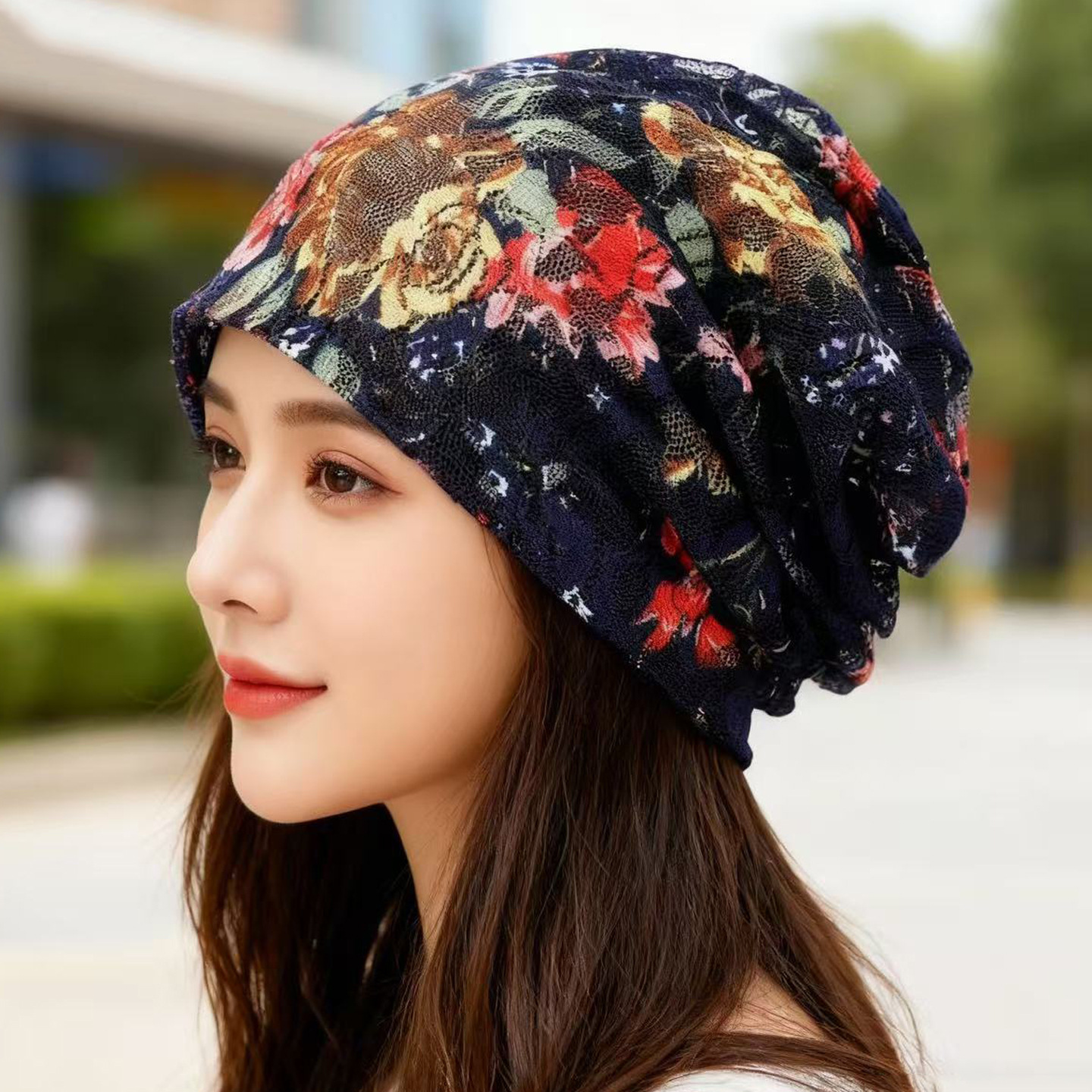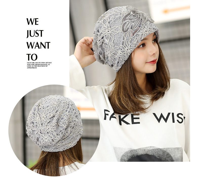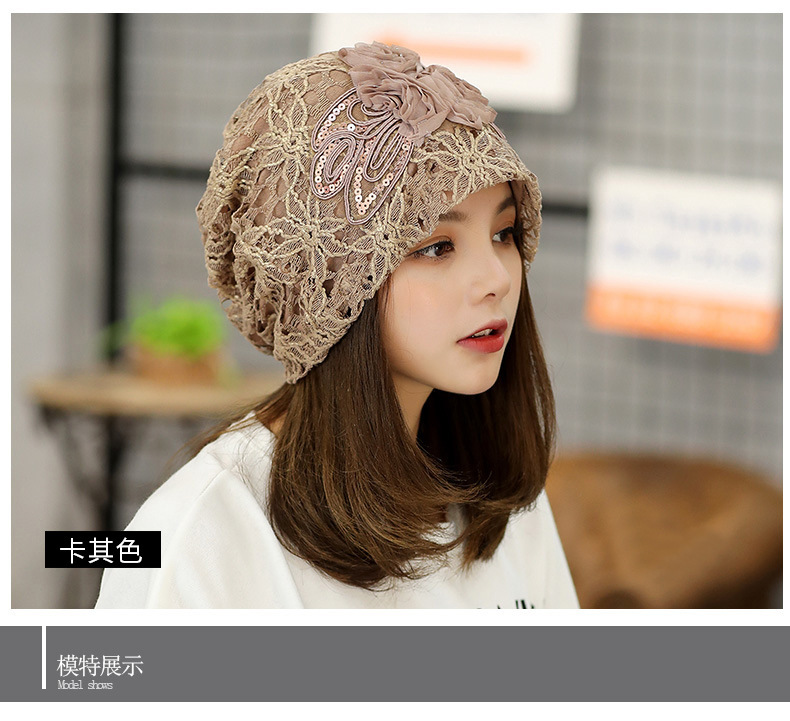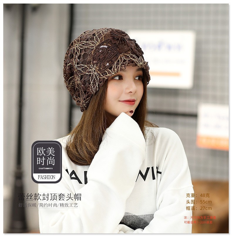 帽子の女性の帽子春秋の薄いタイプのスカーフの帽子の潮のレースの積み重ねのエアコンの帽子のカバーの頭の通気性の月子の寝帽子の冬