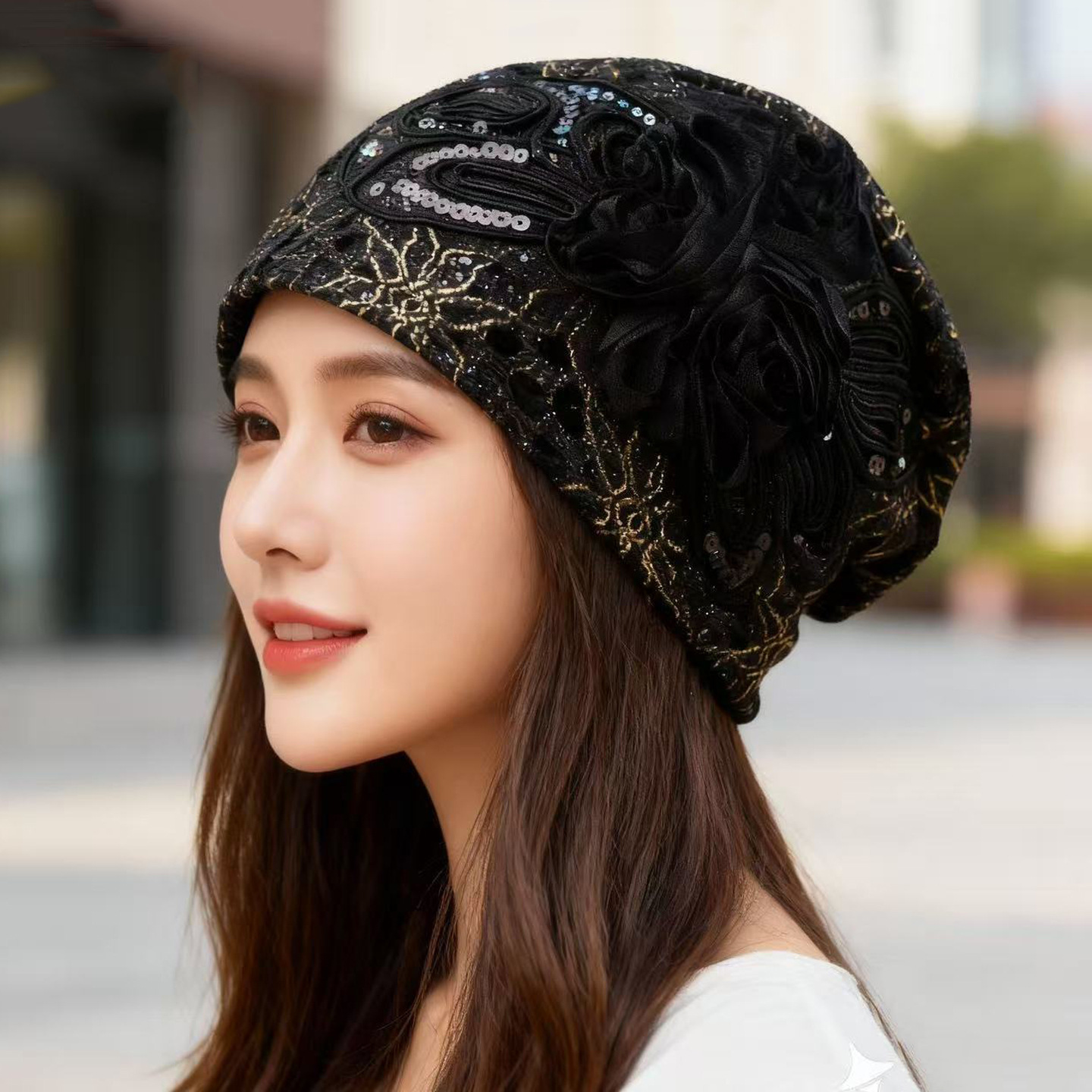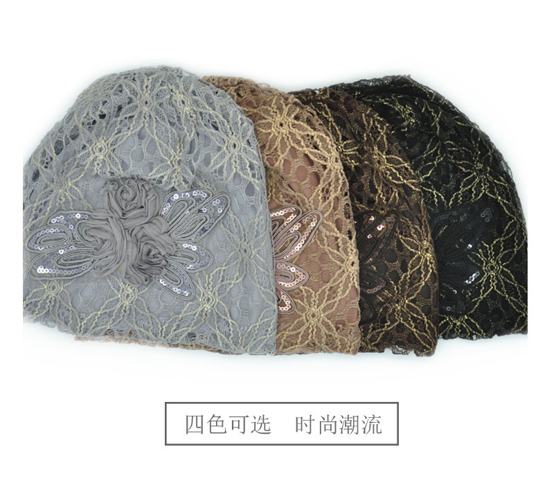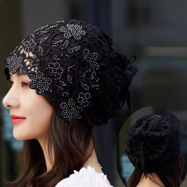 新款蕾丝包头帽女春夏镂空透气遮白发堆堆帽时尚洋气头巾帽