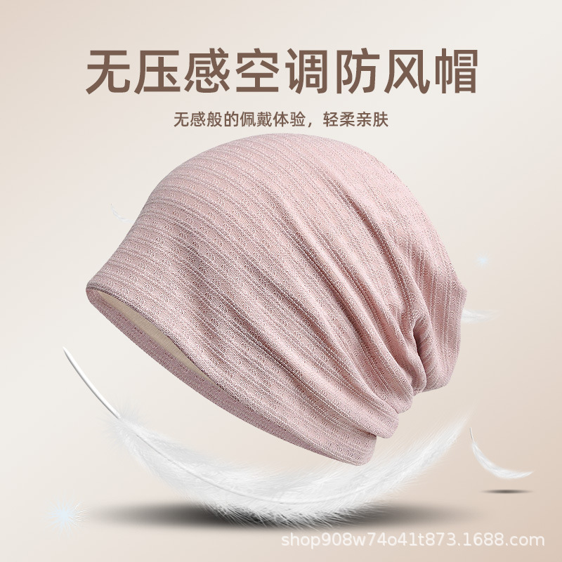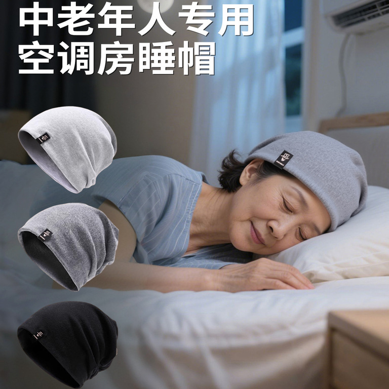 空调房睡帽晚上睡觉戴的包头帽中老年不压头发防风纯棉薄款堆堆帽