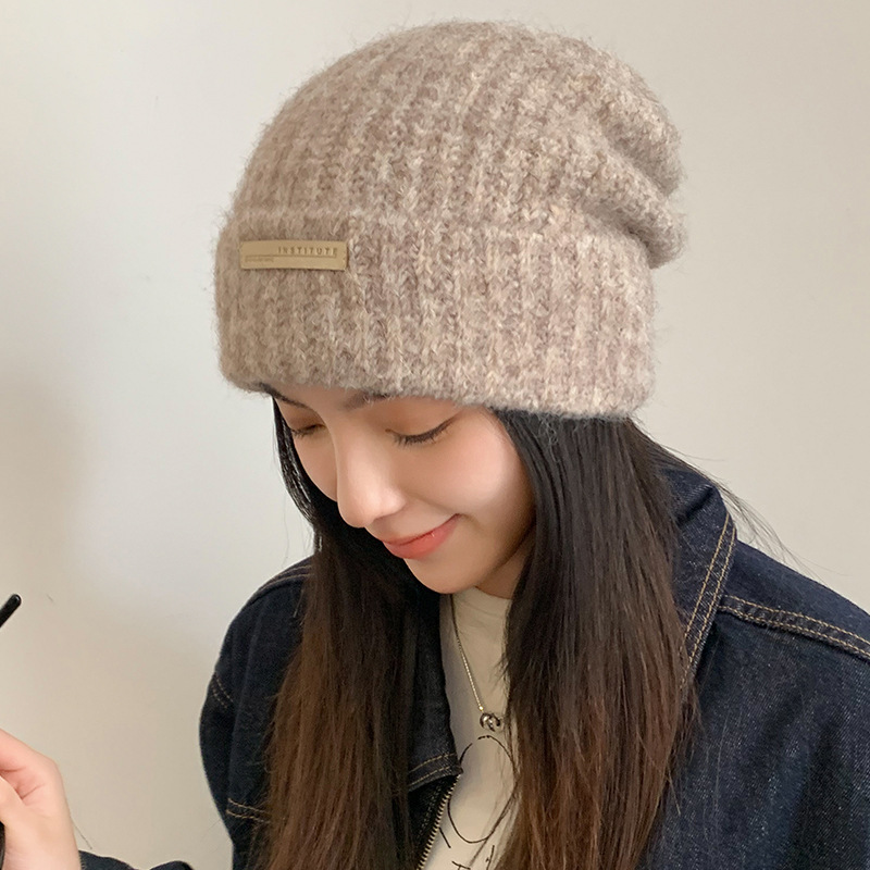 帽子の女性はニット帽2024の新型冬の保温の山の毛糸の帽子の大きい頭の周りを貼って顔が小さくて厚いです。